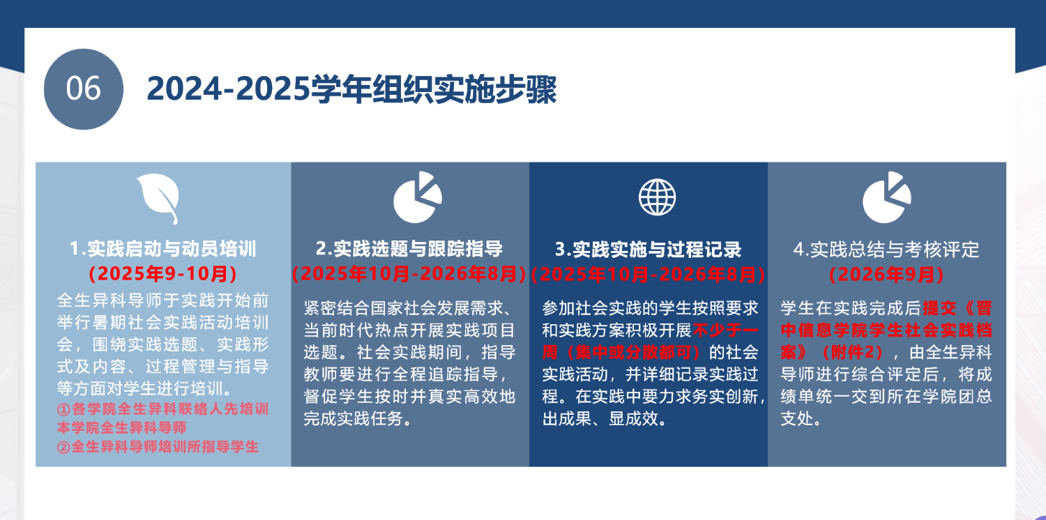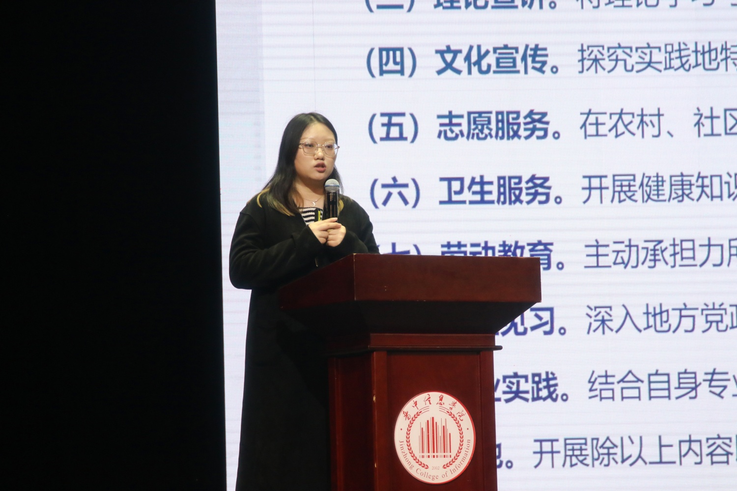 校团委志愿服务中心张悦老师则对《2025-2026学年全员社会实践方案》进行了系统解读。她重申了社会实践作为必修学分的全员参与要求,并明确了全生异科导师在社会实践全流程(选题、实施、总结、考核)中的核心指导责任。张老师以“为什么做、做什么、怎么做?”三个核心问题为串线,详细介绍了社会调查、专题实践、理论宣讲、志愿服务等十大实践内容,并梳理了从9月启动培训到次年9月考核评定的时间节点与关键任务。她特别强调了导师在实践过程中的指导职责与《学生社会实践档案》的规范填写要求,使导师们对如何指导学生在一线社会课堂中“受教育、长才干、作贡献”有了清晰、具体的行动框架。