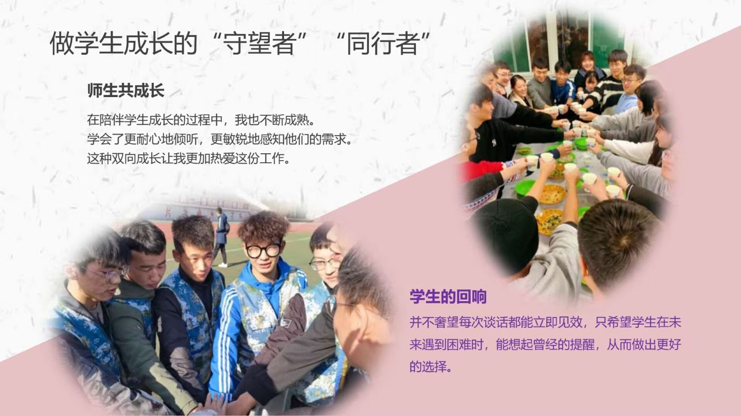 信息工程学院、杏花书院全生异科导师杨瑞老师充分发挥自身学科优势,专注于为学生提供务实且细致的学业与生涯支持。他分享了为学生量身定制的系统化四六级辅导方案,介绍了通过师生共膳营造家氛围的暖心举措,还提及对学生简历修改、考研就业咨询的及时回应,为学生的学业规划与职业发展提供了切实支持。同时,杨老师还注重在各类线下互动场景中融入情感关怀,通过组织包饺子、户外爬山、参观乔家大院等丰富多彩的实践活动,让师生交流更有温度与深度。