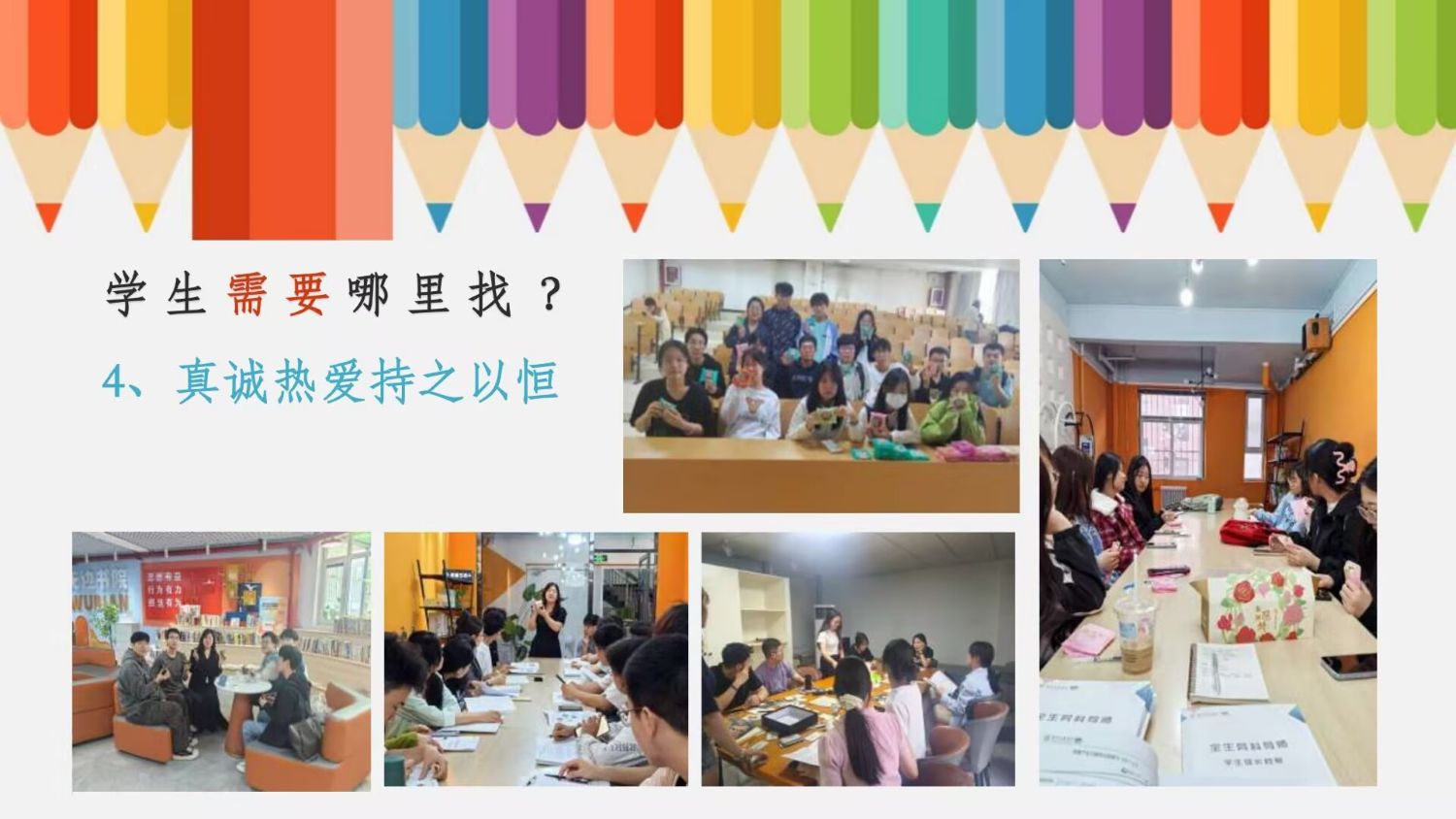 商务英语学院、上河书院全生异科导师张红斐老师以《一个全生异科导师的“六重”告白》的独特视角,将导师角色形象地概括为 “树洞、和事佬、好朋友、电影发烧友、大家长、军师”。她通过守护学生情感、组织观影与手工活动、分享美食、策划户外游戏等实例,生动诠释了如何通过多维度、生活化的互动,成为学生成长路上温暖的同路人。