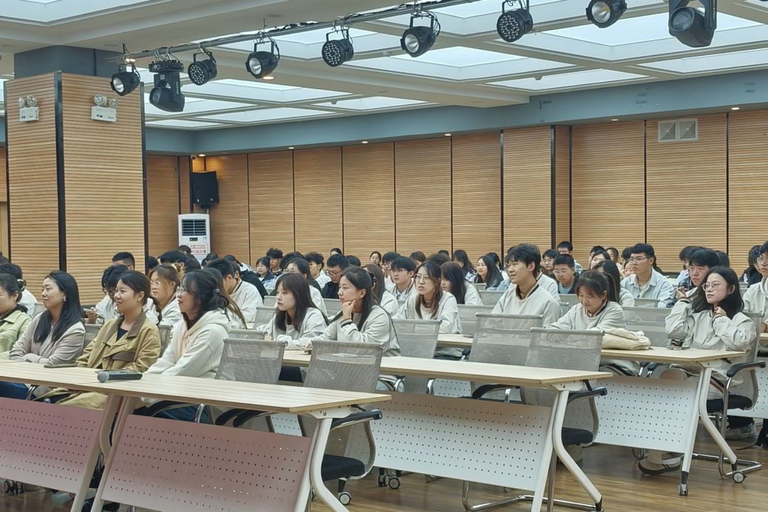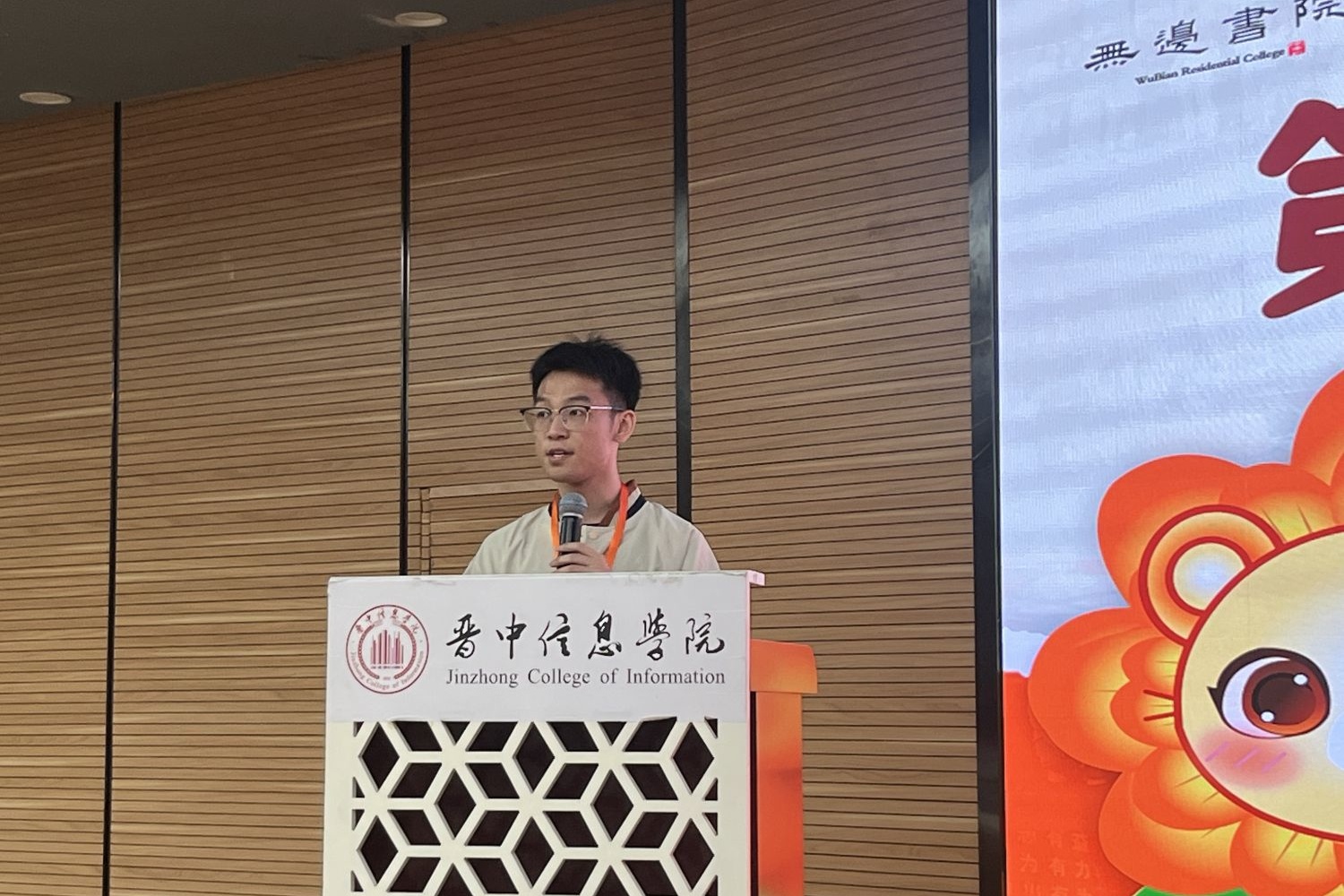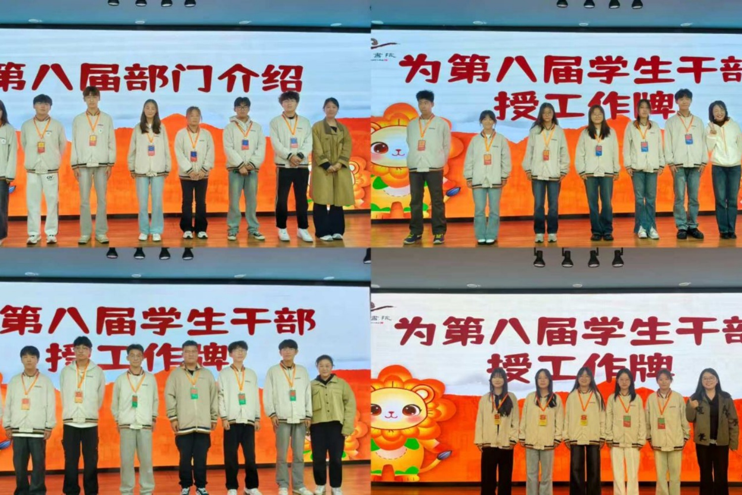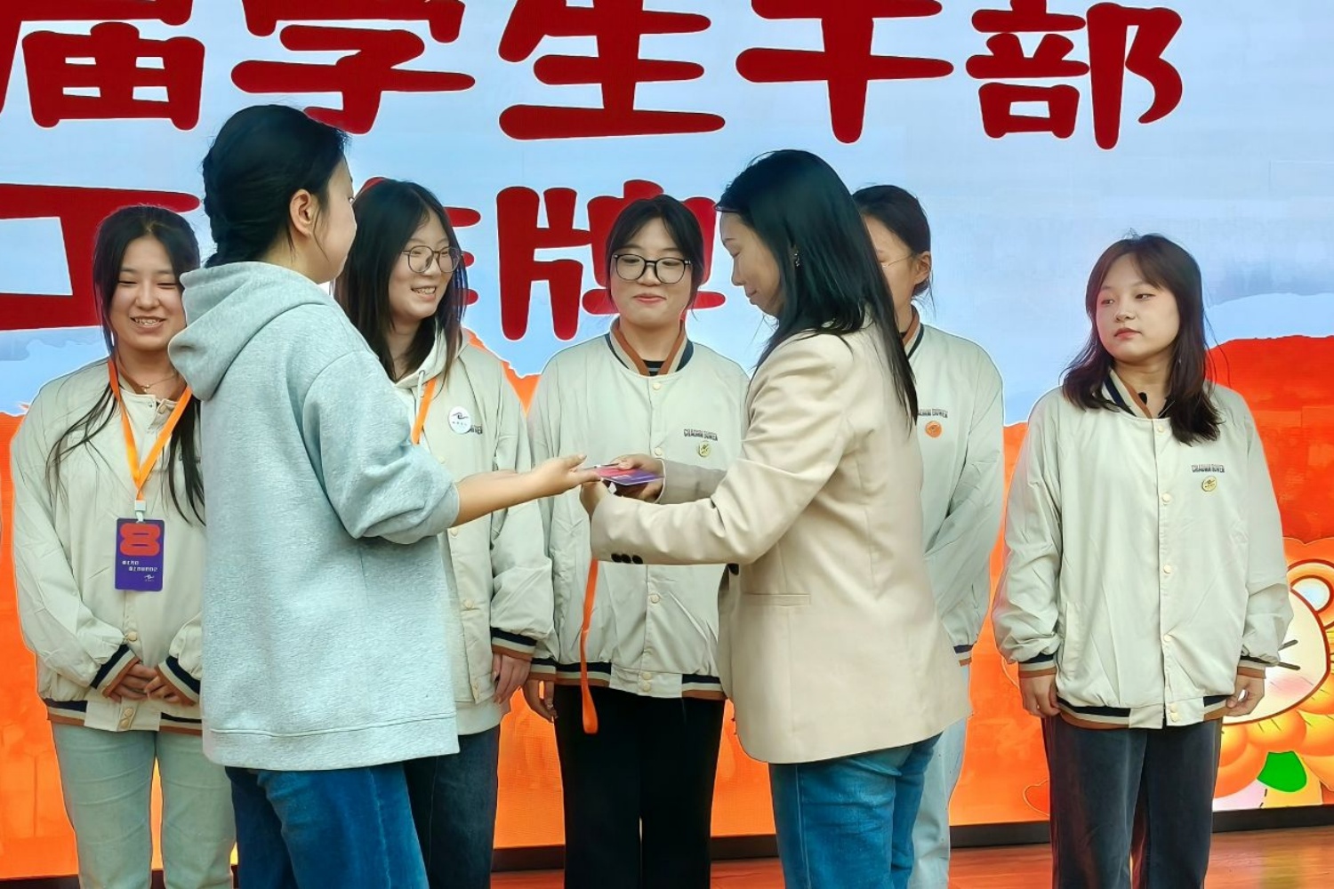 授牌仪式是整场见面会的核心环节,象征着责任的传递。老师们亲手将崭新的工作牌交到第八届干部手中,每一个动作都饱含期许。接过工作牌后,各部门部长依次上台自我介绍与部门介绍,言语间虽有初担重任的些许紧张,更藏着对未来的坚定与热忱。无边书院第八届学生组织干部代表路凯歌回顾了大一刚加入书院时,自己还是个连活动流程都弄不清楚的“小白干事”,是学长学姐手把手教他写策划、做沟通,甚至在他因失误自责时耐心开导。“从坐在台下听前辈分享,到今天站在这里代表新一届干部发言,我用了两年时间读懂‘责任’二字。”他的成长故事让在场学生干事看到了在书院发光发热的无限可能,台下不少同学举起手机,记录下这段充满力量的分享。