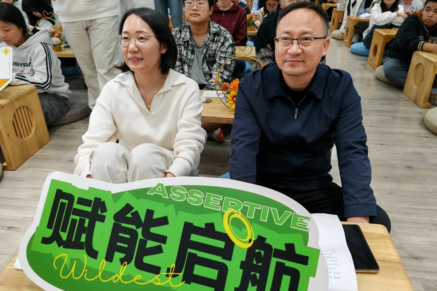 为实现全员全程全方位的育人合力,书院构建多维导师制育人模式,活动邀请书院发展导师为新生代表佩戴徽章。一枚徽章,是一份归属的承诺,标志着他们从此拥有共同的名字——“小行家”。掌声中,是从“我”到“我们”的认同在悄然生长。特邀书院心理导师古田老师带着“心灵关怀”走进新生群体。她借助几位新生的“树-房-人”简笔画,解读初入大学的心绪;书院异科导师耿嘉琦分享了与学生深夜畅谈、共渡迷茫的真实片段。活动现场还播放了异科学生为她准备的惊喜视频。这份“双向奔赴”的师生情谊,生动诠释了书院“家文化”中最重要的内核,真诚的陪伴与双向的关怀。