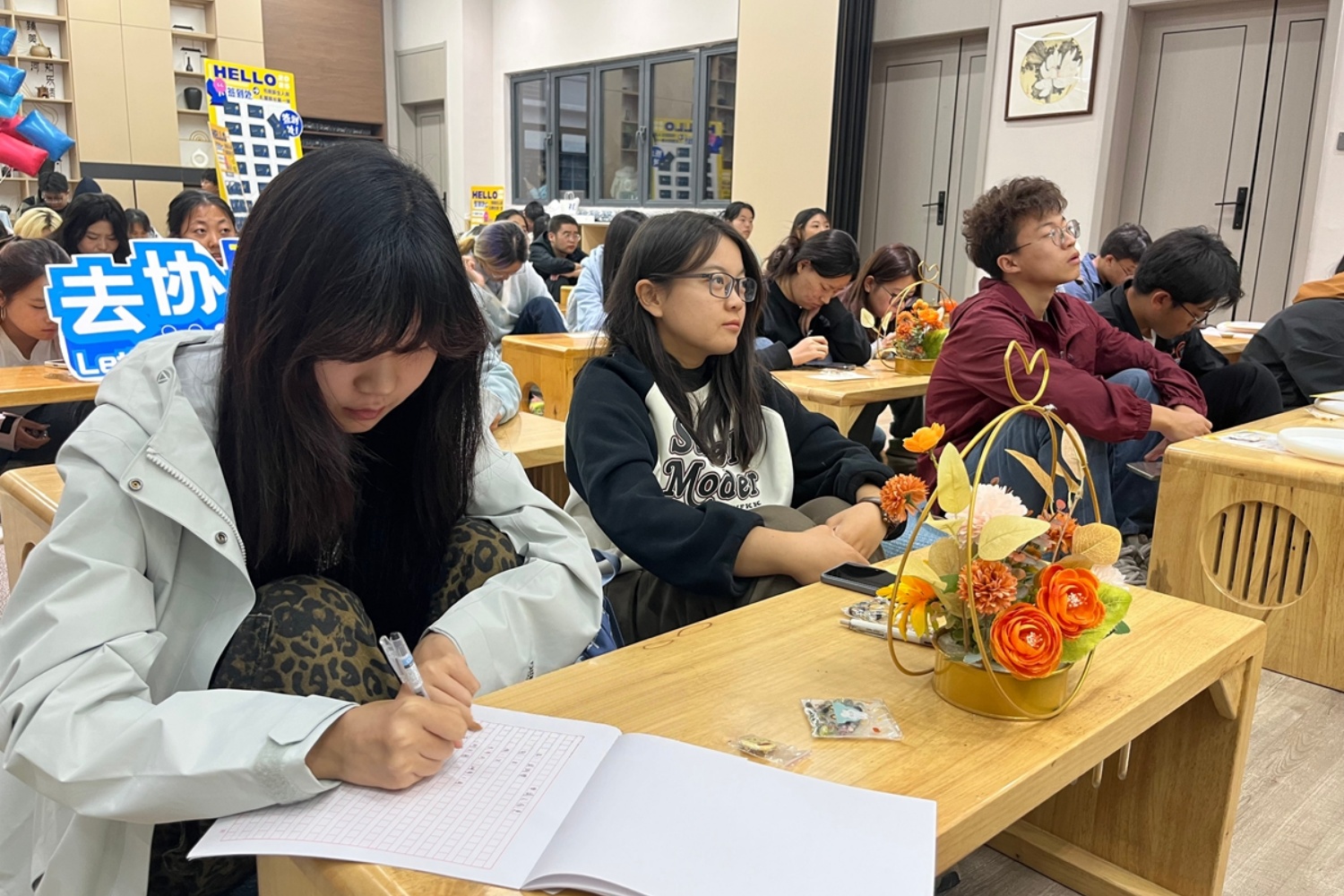 为彰显朋辈引领与榜样示范的力量,建立跨年级的情感链接,书院邀请炫飞航模工作室优秀社长分享“从折叠拼接到飞向蓝天”的成长故事,这个关于兴趣探索与成长突破的故事赢得现场阵阵掌声。听得心潮澎湃还不够,书院为同学们准备了集有趣和有料于一体的“多一点”系列活动,让每个人都能亲身解锁书院生活的小美好:领养绿植让宿舍多一点生机;幕布涂鸦让书院多一点色彩;串联手串让师生多一点链接......同学们不仅能触摸到书院生活的烟火气,更能在点滴互动里读懂书院的文化底色,让“书院是家”的归属感扎根心底,以更鲜活的姿态开启在太行书院的完满时光。