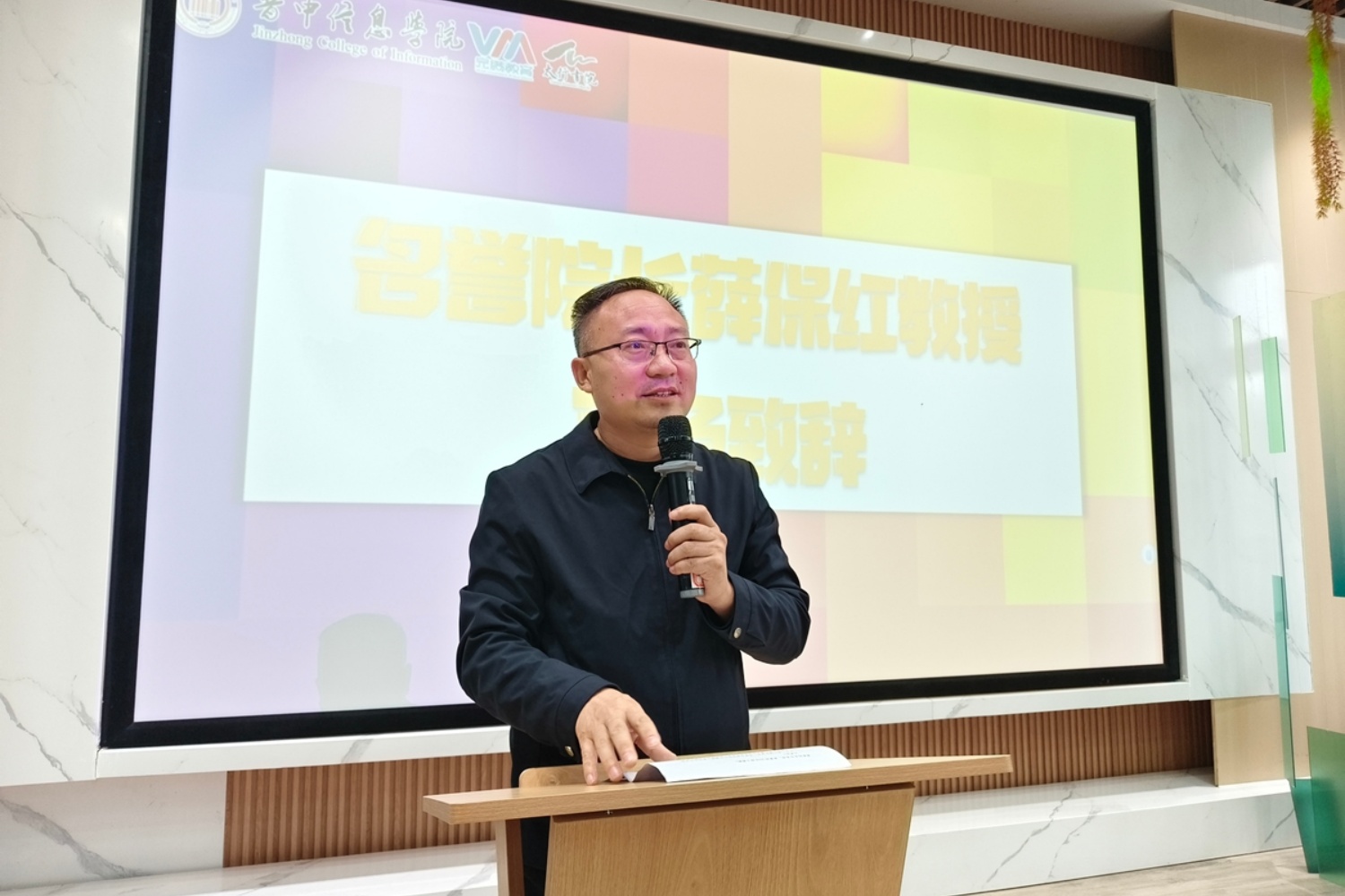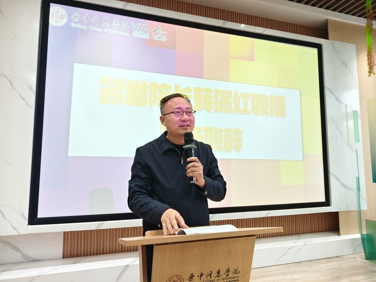 名誉院长薛保红教授以“大家长”身份开场,寄语学子:“大学不仅是学知识的地方,更是学做人的旅程。愿同学们在信院、在太行,既见天地,也见自己。”薛保红教授为书院各项目工坊负责人颁发聘书,肯定了他们在热爱与实践中的重要作用,并鼓励师生携手孵化多元“成长工作台”。书院综合办主任李静老师向新生们温情推介书院,她表示,书院是充满温度的“成长共同体”,这里没有陌生的隔阂,只有家人般的陪伴。从日常的生活解惑到成长的迷茫疏导,书院始终以朋辈互助为纽带,搭建起学长学姐与新生间的沟通桥梁,让经验分享、情感共鸣成为常态。这里的每一份关怀都落地生根,只为让新生快速融入集体,感受“家”的温暖。