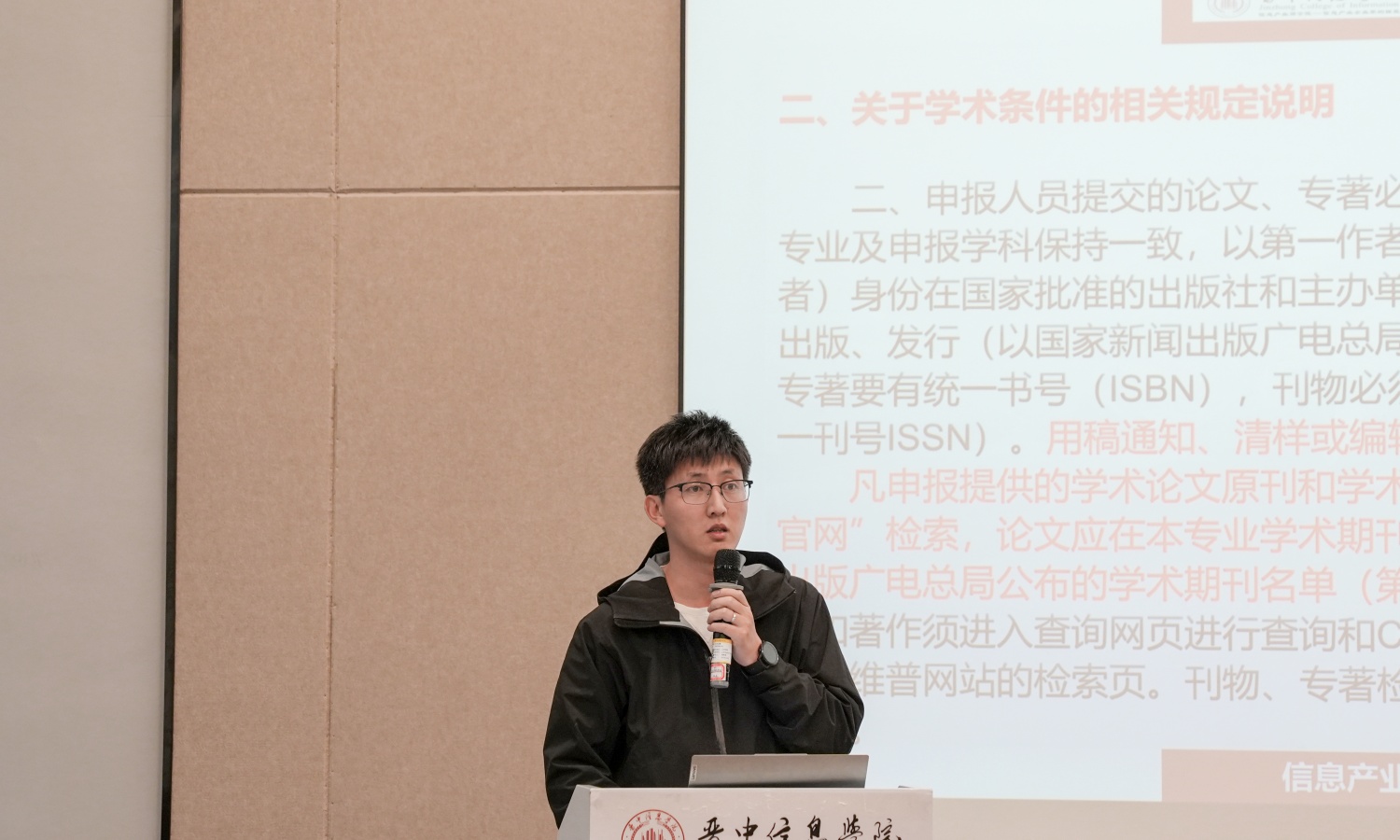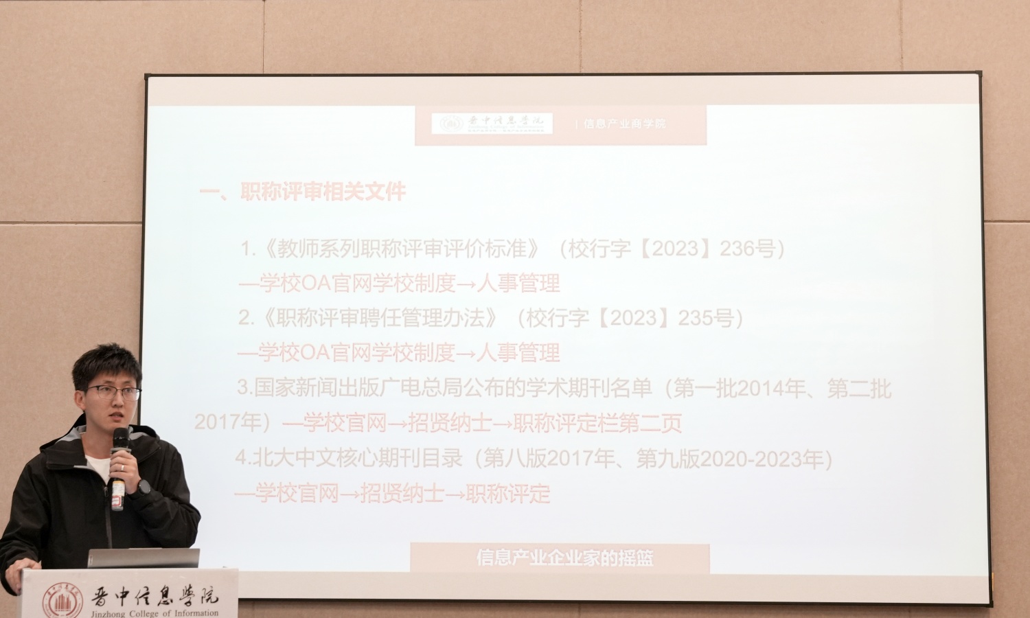明确成果标准后,评审的核心规则与淘汰机制同样需要导师重点关注。杜鹏老师介绍,职称评审需严格恪守“三统一”核心原则,即从事专业、研究方向与科研成果三者必须保持一致。具体来看,申报学科统一限定为“思想政治教育”,严禁跨专业申报;科研成果需紧密围绕思想政治教育方向展开,建议申报者通过讲授形势政策、劳动教育等课程,进一步强化成果与申报方向的关联性;尚未入党的辅导员建议积极向党组织靠拢,为职业发展夯实基础;同时,所有科研成果需以晋中信息学院为第一署名单位。