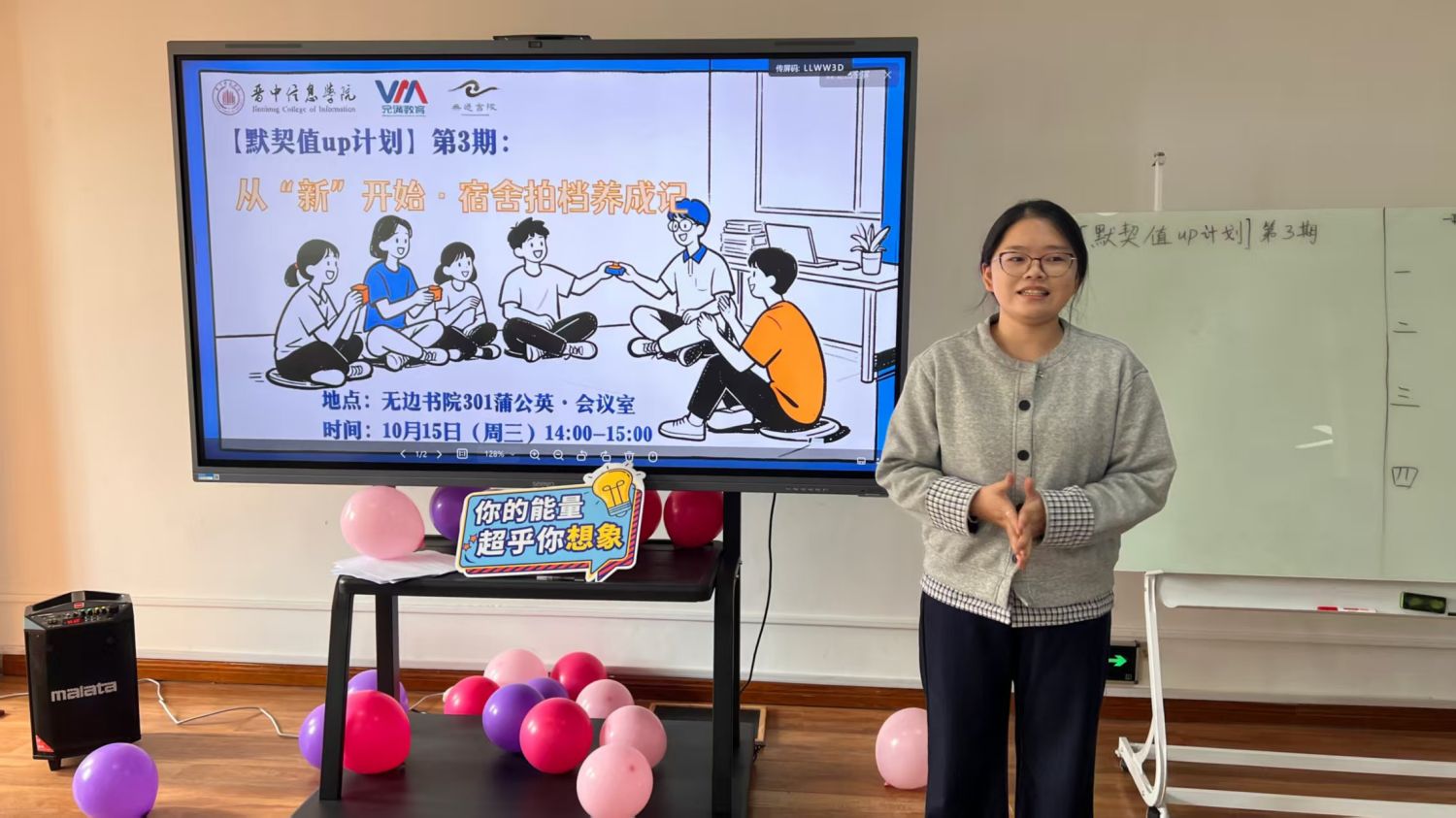 在宿舍这方小宇宙里,氤氲着温馨的烟火气。我们成了青春的最佳拍档,遇见你,真的很开心!10月15日14:00,无边书院于301蒲公英·会议室内举办了【默契值up计划】第3期:从“新”开始·宿舍拍档养成记。一系列默契团队游戏,开启了一段充满欢笑与成长的探索之旅,有效拉近了新生室友间的距离。