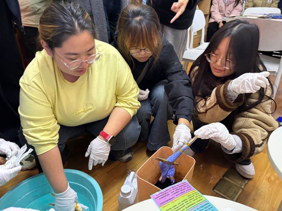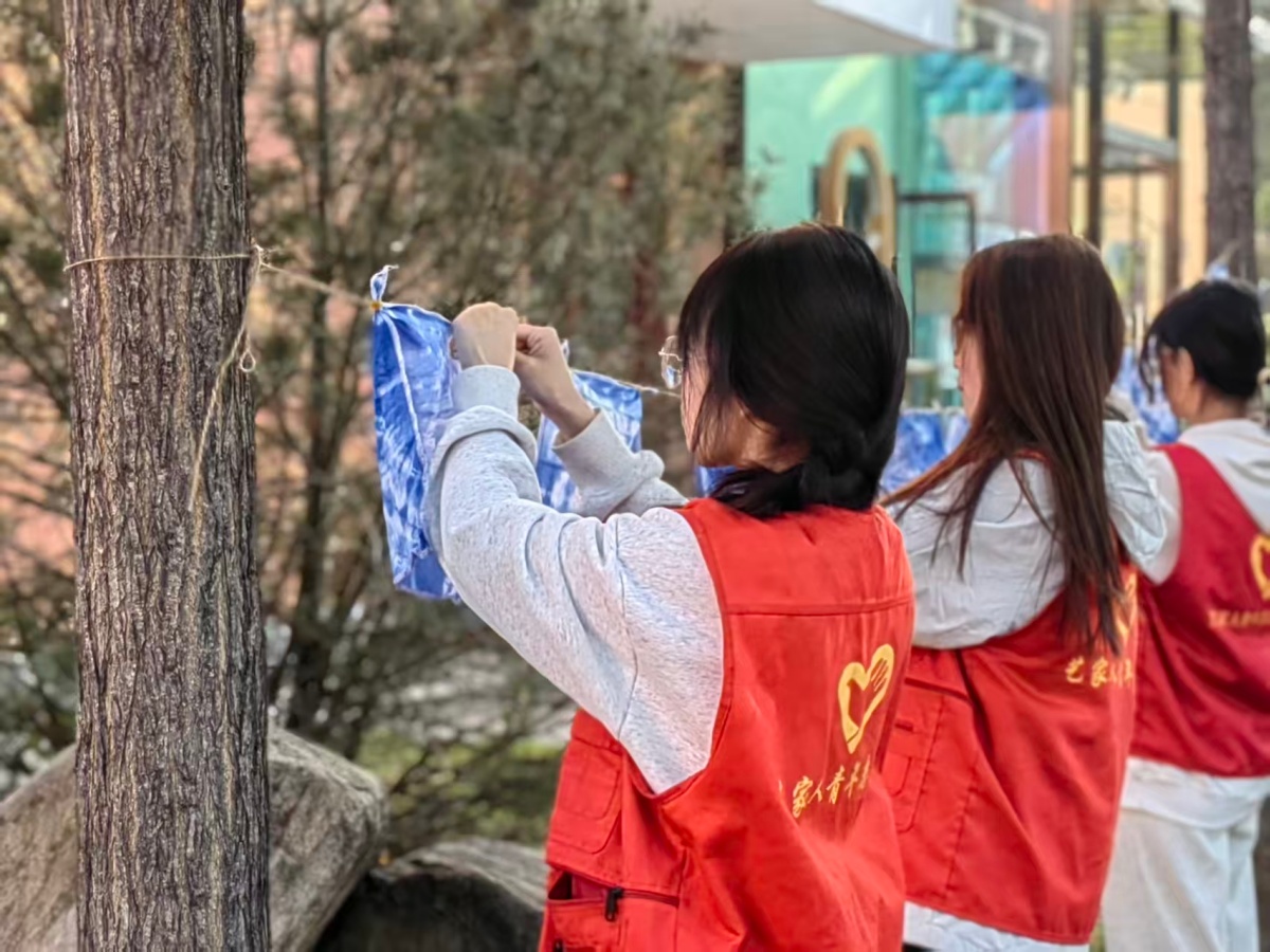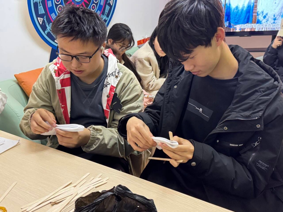 东方爱情里的蓝,从不是直白的宣告,而是中国非遗扎染以手作巧思晕开的温柔。为弘扬中华优秀传统文化,推动非遗技艺在校园中的活态传承,10月27日14:00,艺术传媒学院“拾遗记”非遗传承在行动项目工坊联合白燕书院,特邀异科导师聂彦玮老师,共同策划了一场以“匠心守艺·布里生花”为主题的扎染体验活动,引导学子在亲手实践中感悟非遗魅力,在专注创作中涵养匠心精神。