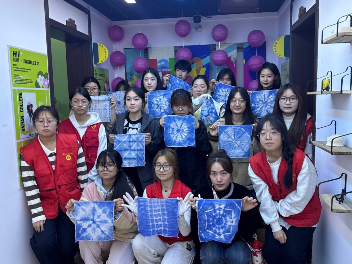这一场异科和专业、工科和艺术的激情碰撞,点燃了在场为一位老师和同学的心,把蓝色的浪漫藏在扎染的温柔中,悄悄住进了每个人心里,成了校园秋日里最特别的回忆。
