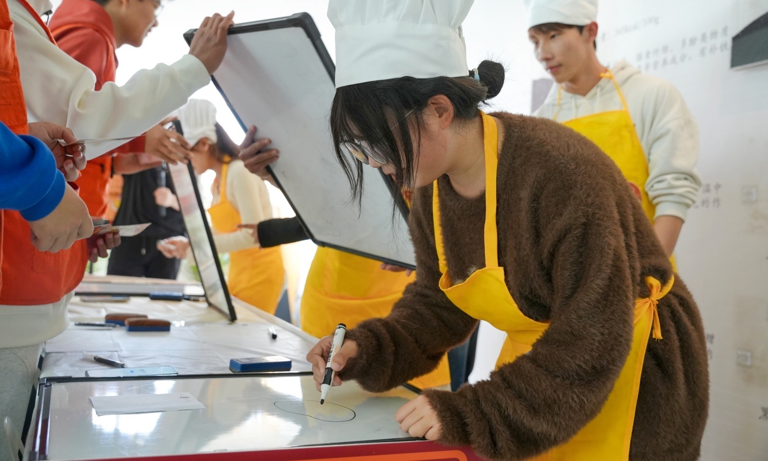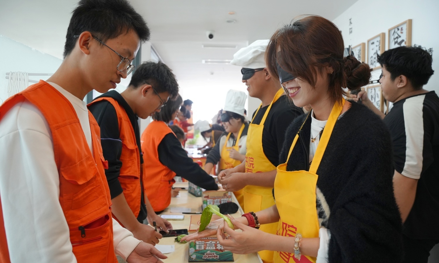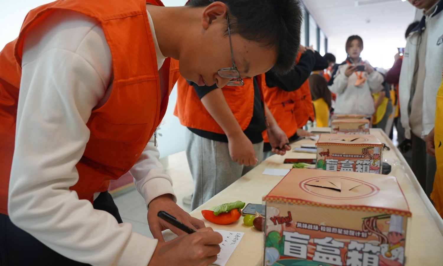 厨房从不止于柴米油盐的琐碎,更藏着同频协作的欢乐。从“食材盲盒触感竞猜”的指尖侦察,到“美食术语你画我猜”的灵魂画技,书院er们在“趣味闯关赛”的游戏互动中尽情释放感知力与团队默契,让赛场在阵阵笑声中热度飙升。