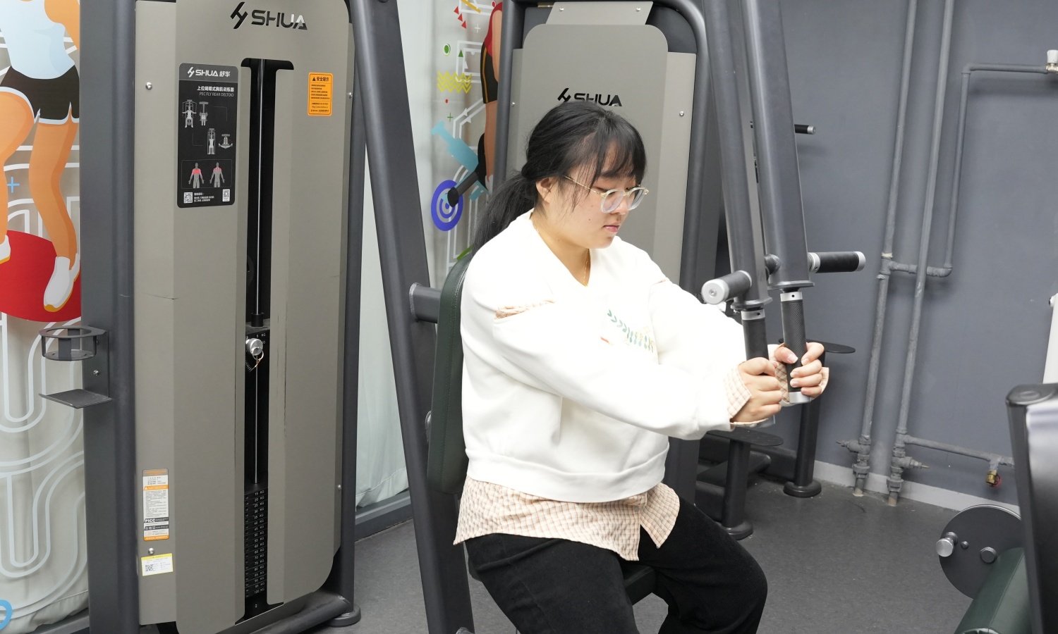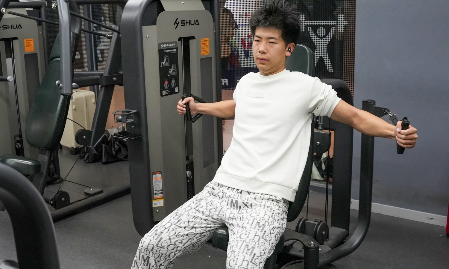 当第一缕阳透过玻璃窗,散布在各个器械上,毣谷书院的健身房也迎来了“早高峰”。“之前早上醒来浑身没劲,现在坚持早起去健身房锻炼,感觉浑身充满力量,可以搞定一天的所以挑战”大二学生李俊轩边热身边分享。刘松坷同学推完肩之后感慨:“晨光里的汗水从不会白流,它不仅雕刻身材,更给了接下来一整天对抗疲惫的底气。”练到汗流浃背时,听着自己有力的心跳与规律的呼吸,那种征服惰性掌控生活的感觉,简直爽到爆了!这不仅仅是晨练,更是一场每日从“困神”到“战神”的华丽逆袭。每多完成一组,就离“更有型”的自己更近一步。
