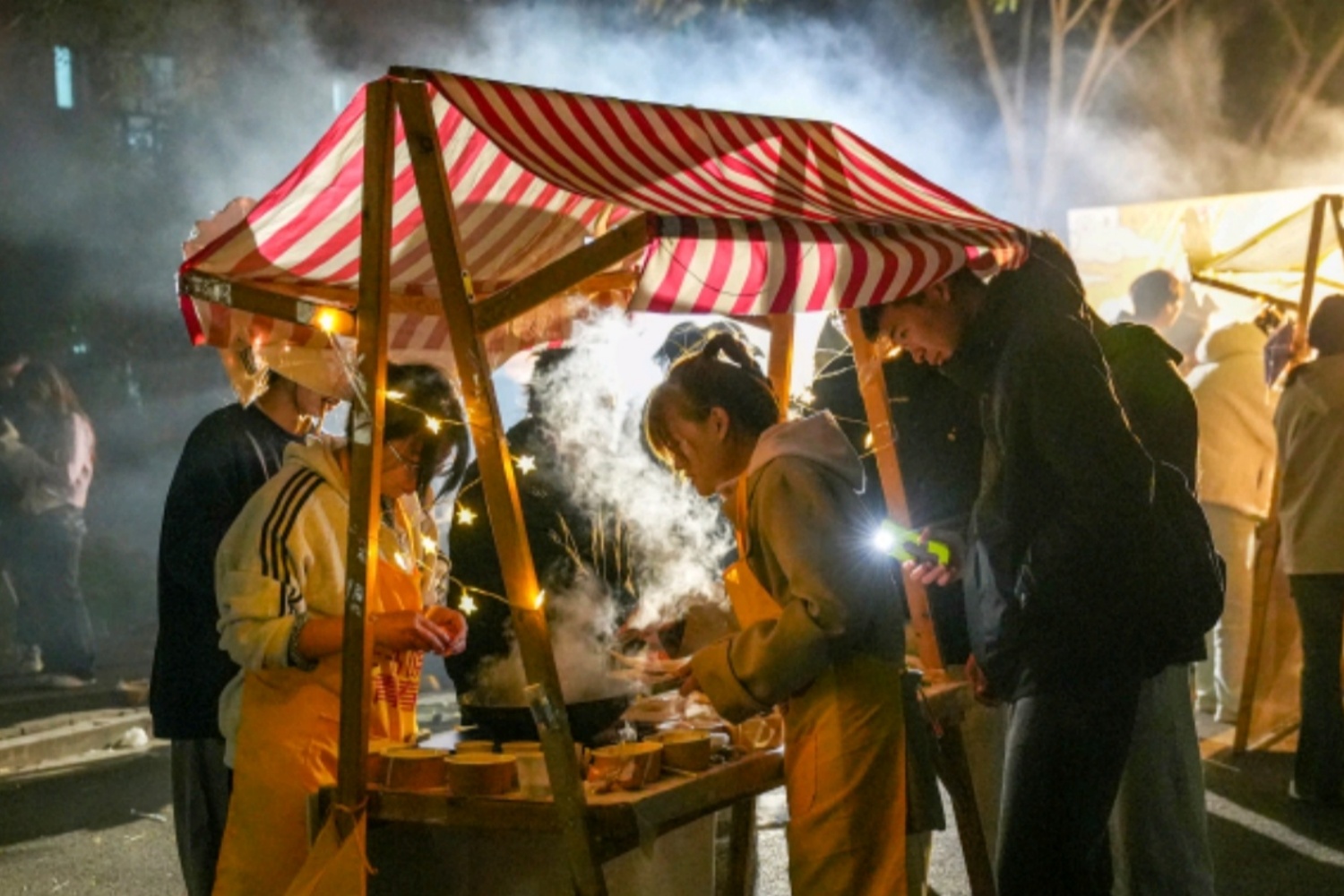 10月13日至19日,“风味战场·校园厨星觉醒计划”火热开启。全校568名书院学子怀揣对美食的热爱,以食材为媒、用巧思为刃,在三个环节中角逐晋级名额,让“校园美食主权”悄然回归,成为秋日校园里最引人驻足的盛事。“独闯江湖·自创门派大众赛”在香气四溢、炊烟缭绕的学生服务中心广场搭建临时灶间,无门槛的海选率先点燃赛事热度;“百舸争流·校园厨力突围赛”,100位校园小厨神围绕西红柿炒鸡蛋、蚝油生菜等五款指定家常菜展开比拼,凭扎实功底争夺突围资格;待夜幕渐深,“市井江湖·厨星创意晋级赛”接棒开场,青藤小巷的摊位区暖黄灯光次第亮起,锅铲与铁锅碰撞出明快节奏,热油爆香升起袅袅白烟,香气与热气交织弥漫整条小巷,成功晋级的50位“星厨”在此演绎创意满满的命题竞技。晋级的20位“准厨星”已开始期待鲜厨训练营的培训,这场属于青春与美食的较量仍未完待续。