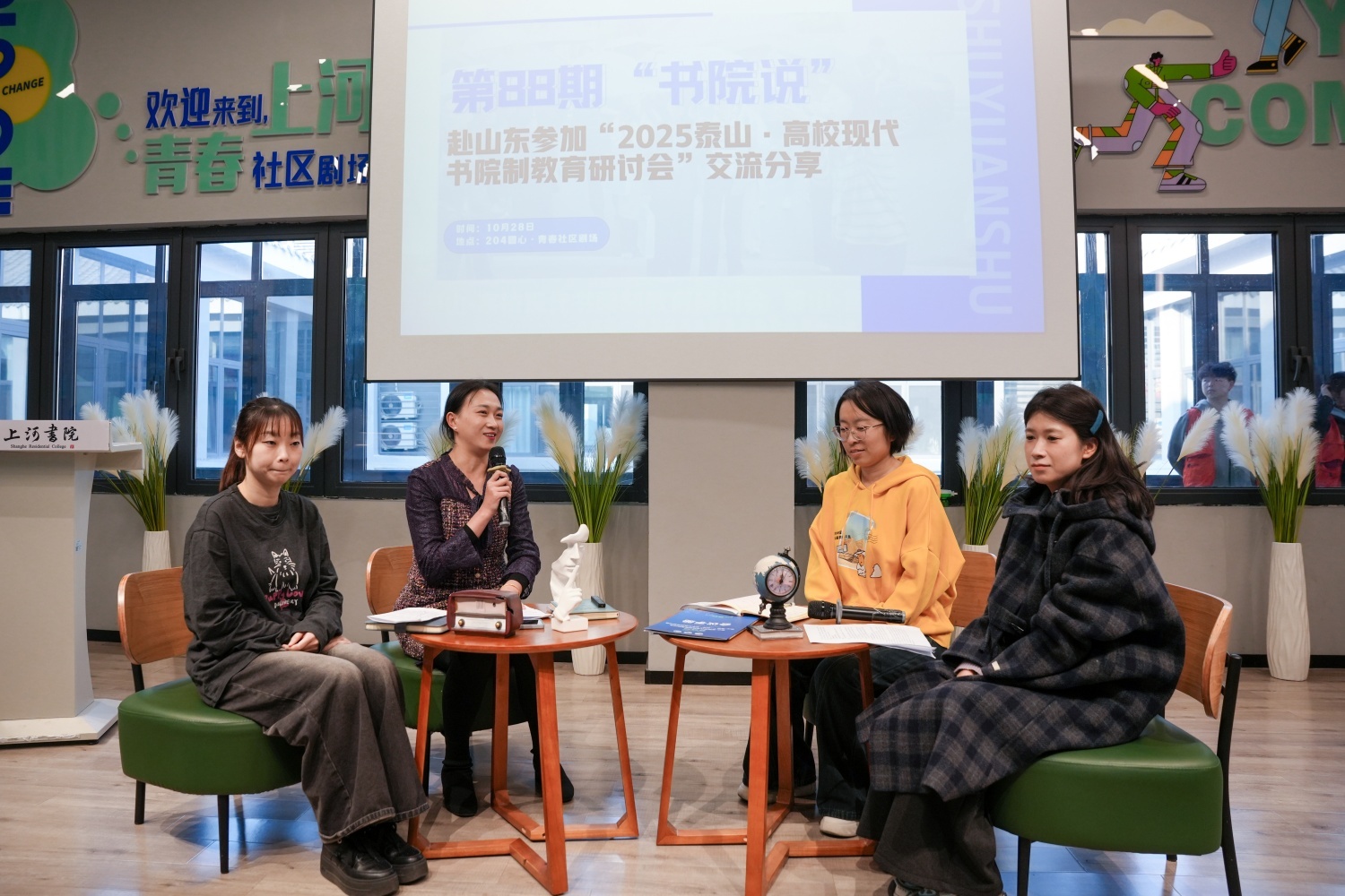10月28日,第88期“书院说”专题活动于上河书院204圆心·青春社区剧场如期开展。活动特邀五位赴泰山科技学院参加2025泰山・高校现代书院制教育研讨会的导师展开分享,他们从书院建设本质与功能定位、活动组织实践优化以及空间文化与学生角色转型等视角共话书院育人的“破局”与“进阶”,为新时期书院高质量发展注入鲜活思考动能,让现场的导师们在交融中感受到书院建设的无限可能!未来,各书院将以此次分享为契机,结合自身特色将跨校智慧转化为本土实践,持续推动书院从“建设空间”向“育人共同体”蜕变,为培养“完整的人”释放更多书院动能。