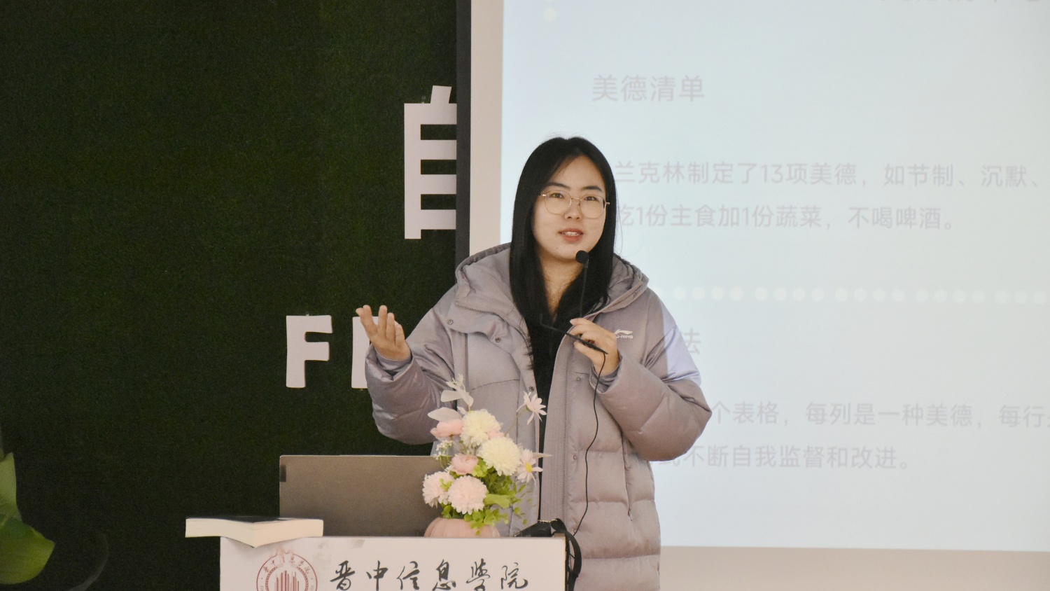关于富兰克林的人生故事,来自远景学院电气工程及自动化专业的霍雨涵同学不禁感叹:“我觉得富兰克林的人生太有韧性了!在那个医疗条件简陋、物资匮乏的年代,每天工作12小时以上,怀揣一美元闯荡费城,却能一步步逆袭。这让我明白,所谓命运,更多是靠自己的坚持和勇气打拼出来的。”还有一名来自淬炼商学院·国际商学院行政管理专业的李艳威同学说“富兰克林的故事让我很受启发,尤其是秩序和节俭,使我更明白自律的重要性!”而现场同学们也都表示将以富兰克林为榜样,制定个人成长计划。活动结束之际,付老师总结道:“富兰克林的故事告诉我们,平凡人也能通过自律、创新与责任,创造不平凡的人生。希望大家以他为榜样,明确目标、脚踏实地,在成长路上不断突破自我。”