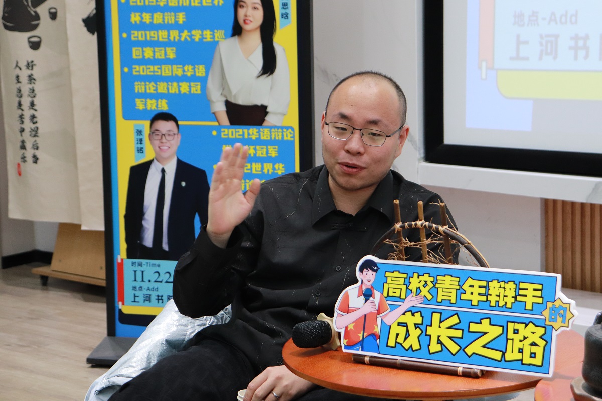 下午,箕城书院于上河206举办【书院围炉夜话】:“高校青年辩手的成长之路”。本次活动特邀2019华语辩论世界杯年度辩手、2019世界大学生巡回赛冠军、2025国际华语辩论邀请赛冠军教练黄思晗老师,2021华语辩论世界杯冠军、2022世界华语辩论锦标赛季军、第六届山海杯国际辩论邀请赛亚军张泽铭老师以及箕城书院综合办公室主任李孟孟老师,以干货分享解锁辩手核心能力,为高校青年辩手明晰成长航向。两位老师讲述与辩论的缘起——或因社团宣讲的热血感召,或为学长学姐的暖心扶持与团队荣誉所吸引,真挚叙事引发在场学子强烈共鸣。谈及竞技胜负,老师们坦然分享曾因失利落泪的经历,更着重强调:辩论的真谛不在于执念结果,而在于永葆热爱之心,于失利中沉淀反思,方能在思辨之路上行稳致远。