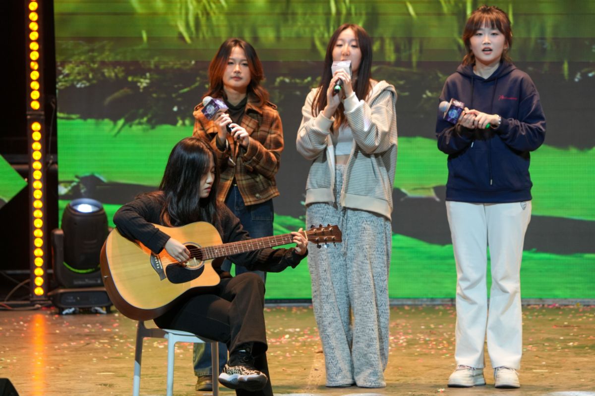 从心动到行动,从憧憬到践行,这是青年与世界的郑重约定。学校两位美籍外教Riley、Sean用松弛的状态告诉大家:以一种简单而友好的姿态走出去,认识新朋友、探索令人惊叹的地方是多么美好的想法,也希冀大家能够经历一场充满勇气和美好回忆的冒险。《稻香》清澈的歌声中,流淌着面对未知时的乐观与勇气;《心跳变速:舞蹈的多重奏》以灵动的舞步诠释“行动至上”,跳跃与转身之间,诉说研学是用脚步丈量大地,用双眼见证文化的包容与精彩;《“躺平者”的觉醒之旅》更诠释了青春的意义,正在于主动破局,用行动兑现对世界的承诺。当《世间美好与你环环相扣》的旋律温柔响起,信院青年的合唱中满载深情与期盼。