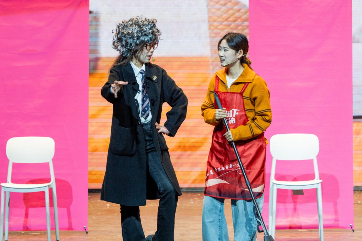 成长从不是孤军奋战,同行的温暖总能化作前行的力量。2023年曾赴德国MU大学交流教师代表、书院教师雷淼的真挚讲述,为这一篇章定下温暖基调。排练时的争执与和解、舞台上的配合与支撑,正是研学路上“同伴力量”的生动预演。从《宿舍风云》对互助的演绎,到《旋律未尽》里协作的美妙,再到《璀璨星光》中勇气的绽放,这些舞台瞬间都在诉说同行的意义。对即将研学的学生而言,这份同行不仅是旅途中的陪伴,更是异国他乡攻克语言难关、适应文化差异的底气,是多元思维碰撞中突破自我的支撑,让每个人都能在世界舞台上更从容地绽放光芒。