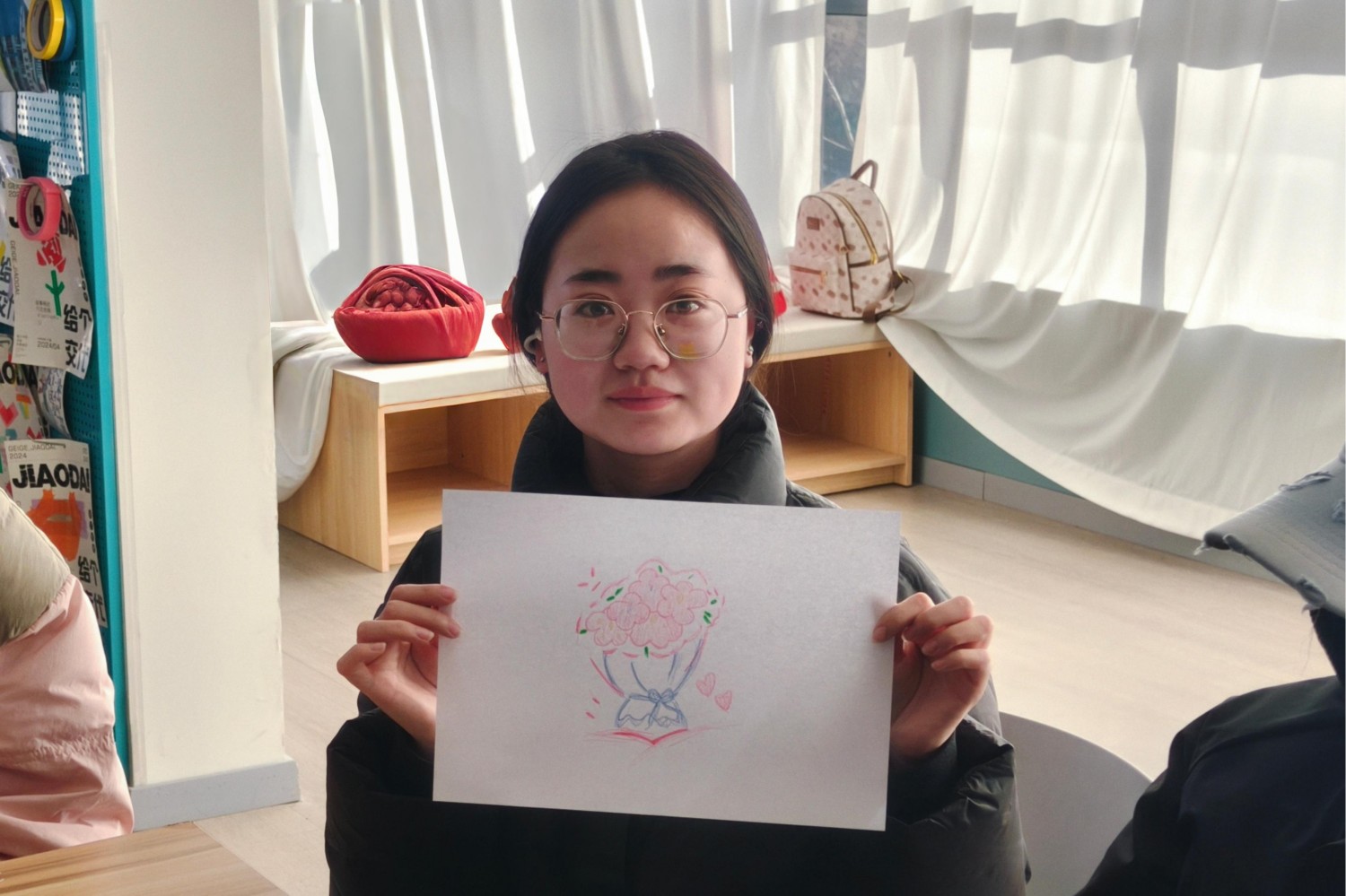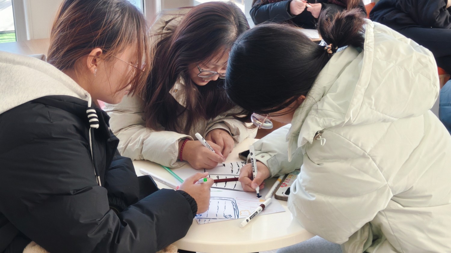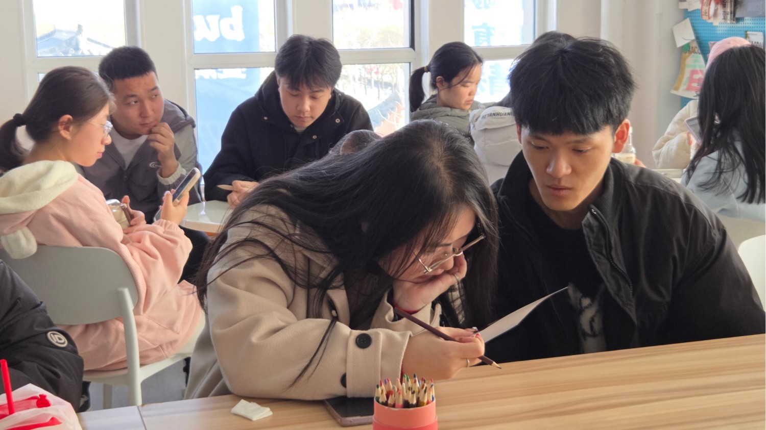 画笔挥洒间,情感有了具象的模样;文字编织时,梦想有了鲜活的形态。第3期“笔端藏絮语·画里有故事”活动接力启航。“隐藏的图画”破冰环节让大家快速融入氛围,主持人武铎同学先通过照片配文示范,让同学们用纸笔与颜料将文字灵感转化为线条与色彩,用简约勾勒或斑斓晕染诠释故事主题。随后,两人一组围绕画作进行文字创作,分享画面背后的午后偶遇、难忘小事与细腻情绪,最后带着作品合影留念,定格创意与温情交织的瞬间。