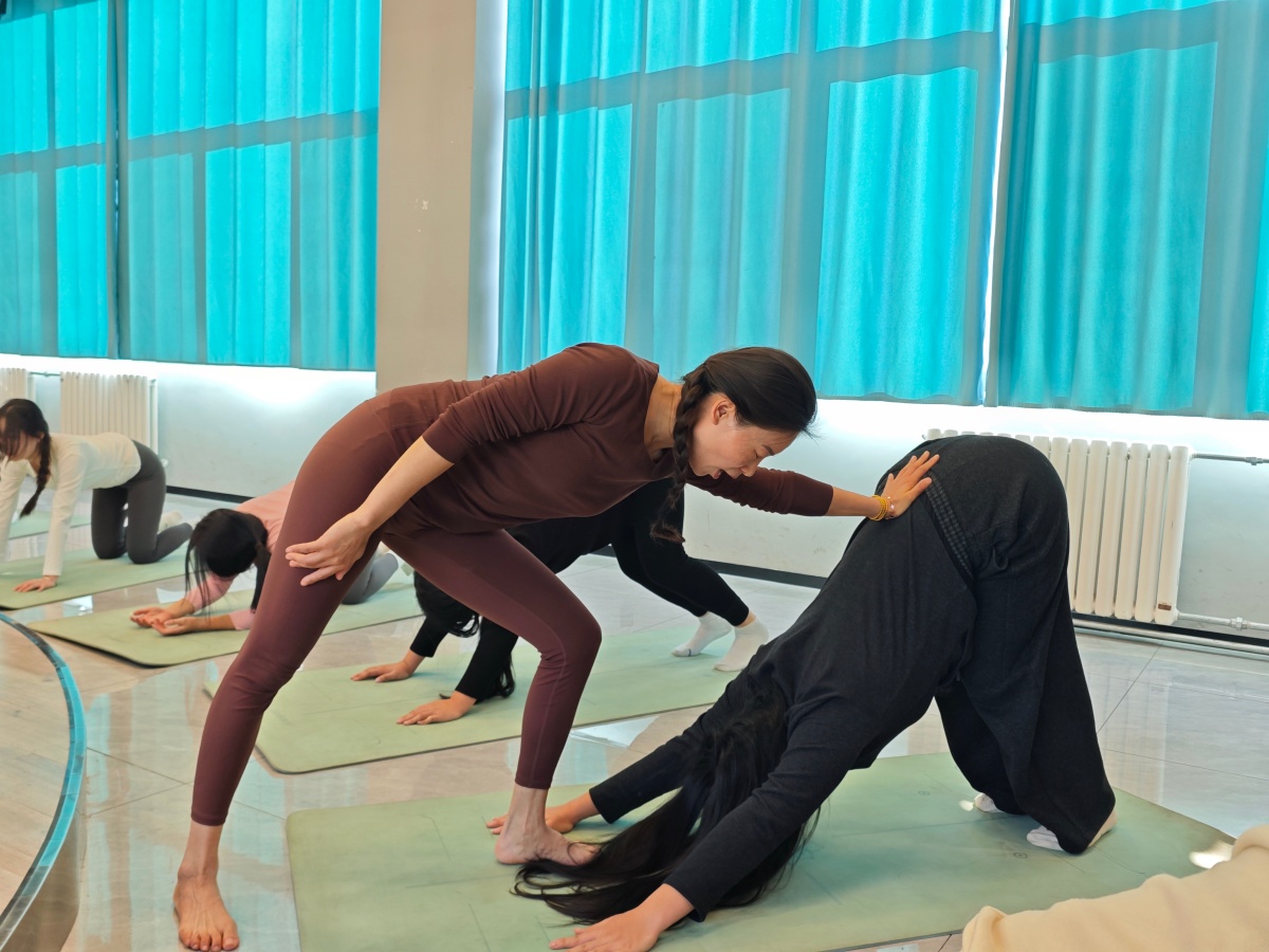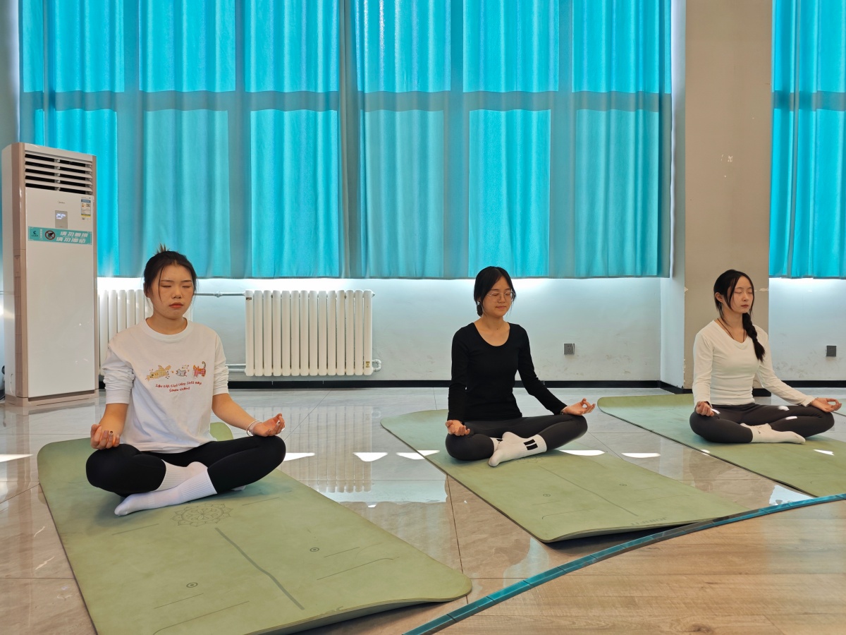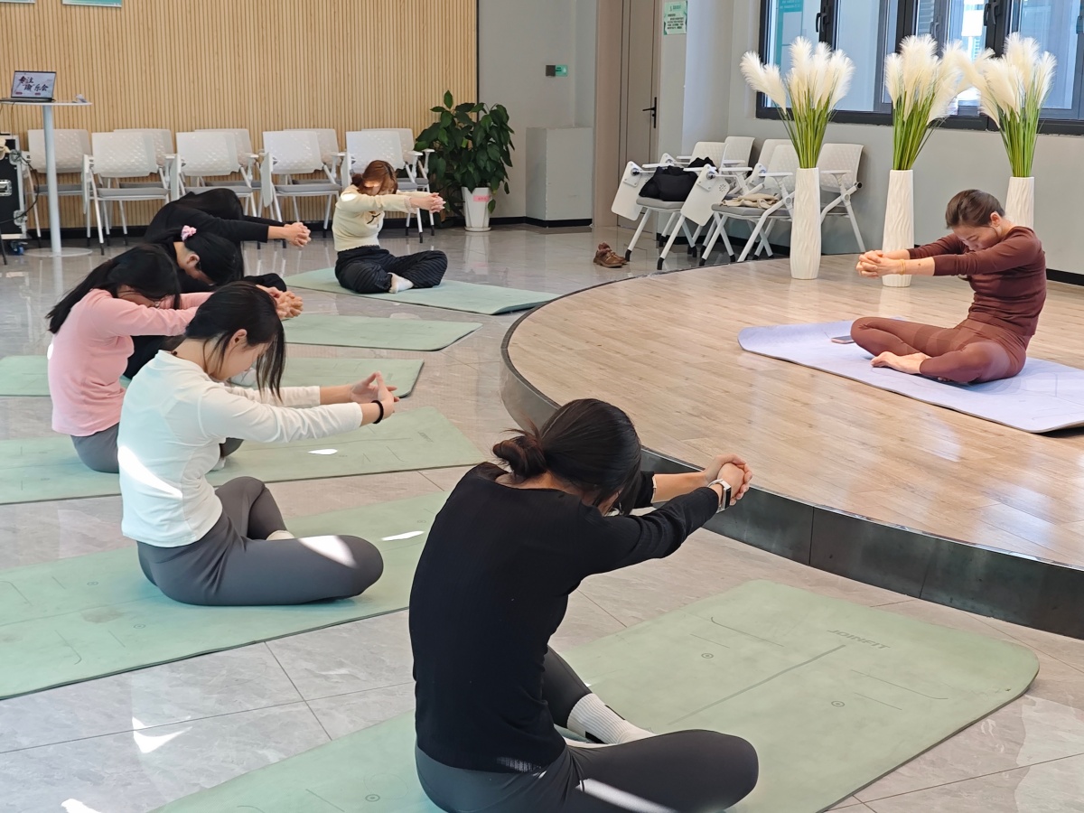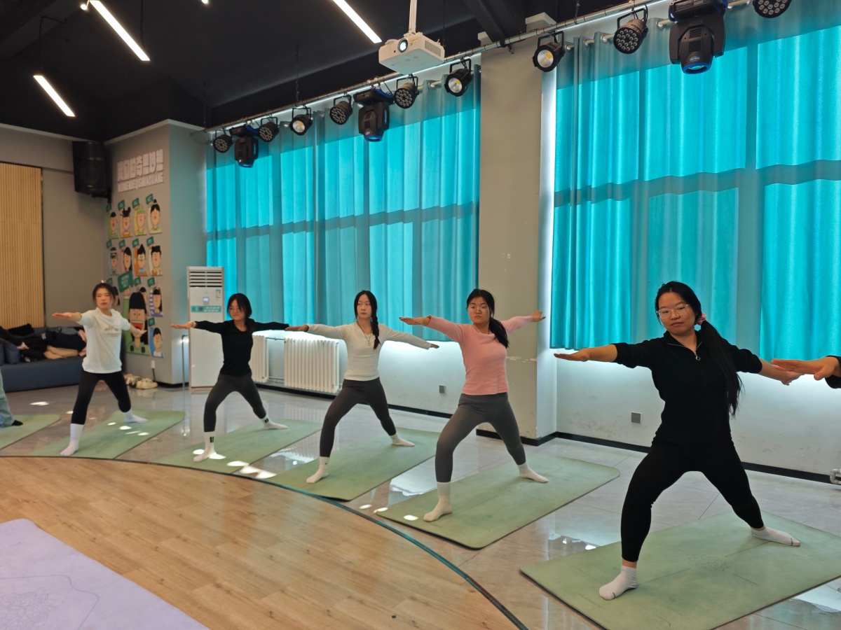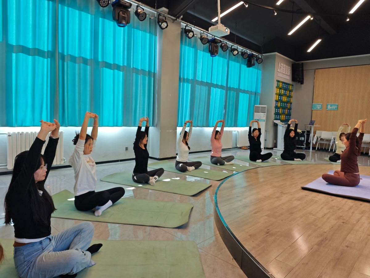 “欢迎来到今天的专注‘瑜’乐会!”主持人社区服务部部长杜雅琪活泼的声音响起,也意味着这场专注之旅的正式开启。她清晰地介绍道:“咱们今天先从一些简单的热身拉筋开始,再跟着刘红霞老师学习基础瑜伽体式,试着在每一个动作里和自己的身体同频。”