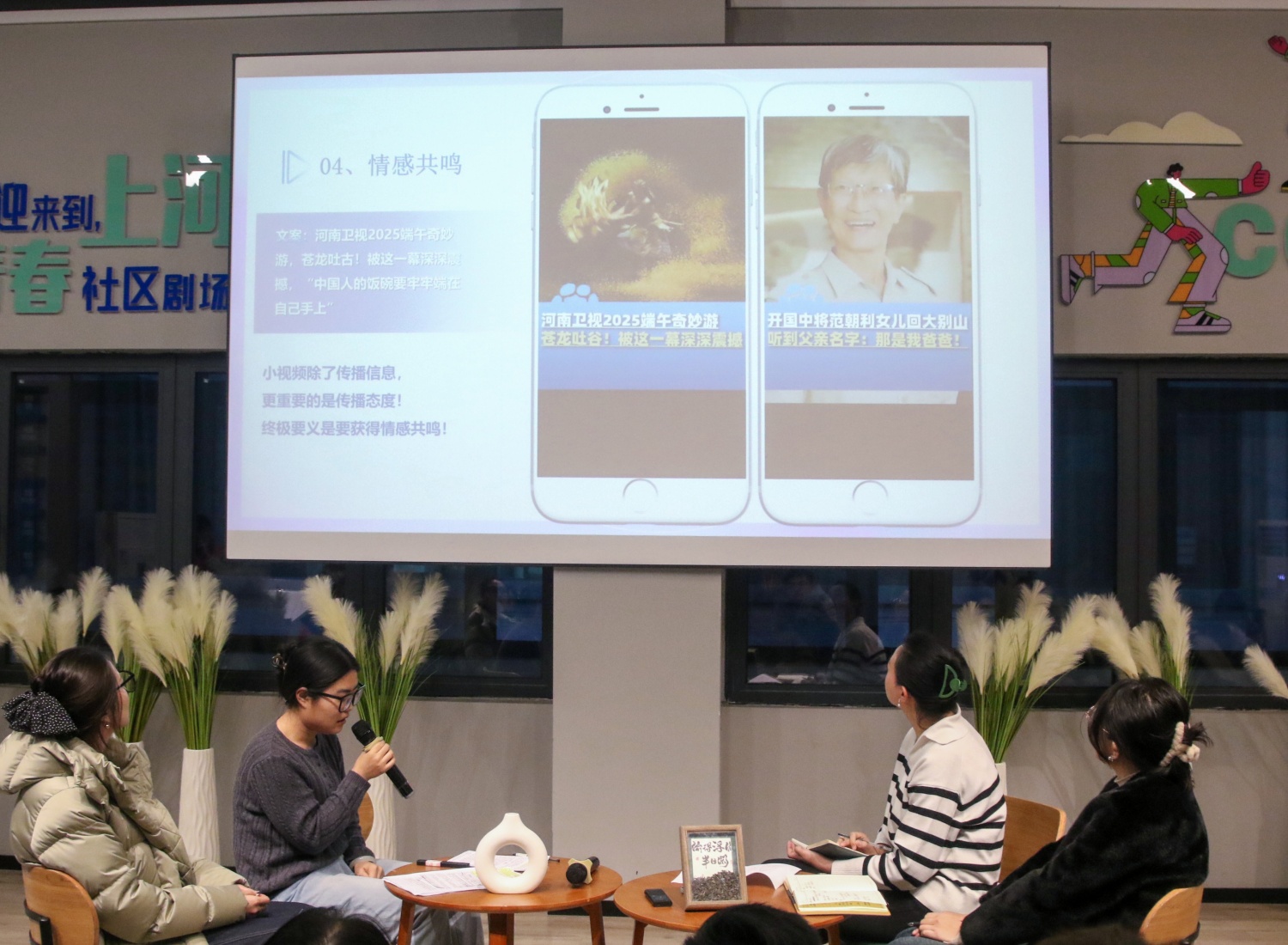 12月16日,第90期“书院说”专题活动于上河书院204圆心·青春社区剧场如期开展。活动邀请了赴京参与宣传营销与运营培训的两位书院导师,聚焦短视频平台运营策略与内容创新展开深度交流。从内容安全与差异化定位到用户共鸣营造,两位导师通过系统拆解、案例剖析与互动探讨的多维视角,层层递进解析新媒体运营关键逻辑与赋能宣传营销的方法与路径,为书院新媒体运营工作注入了全新思路。