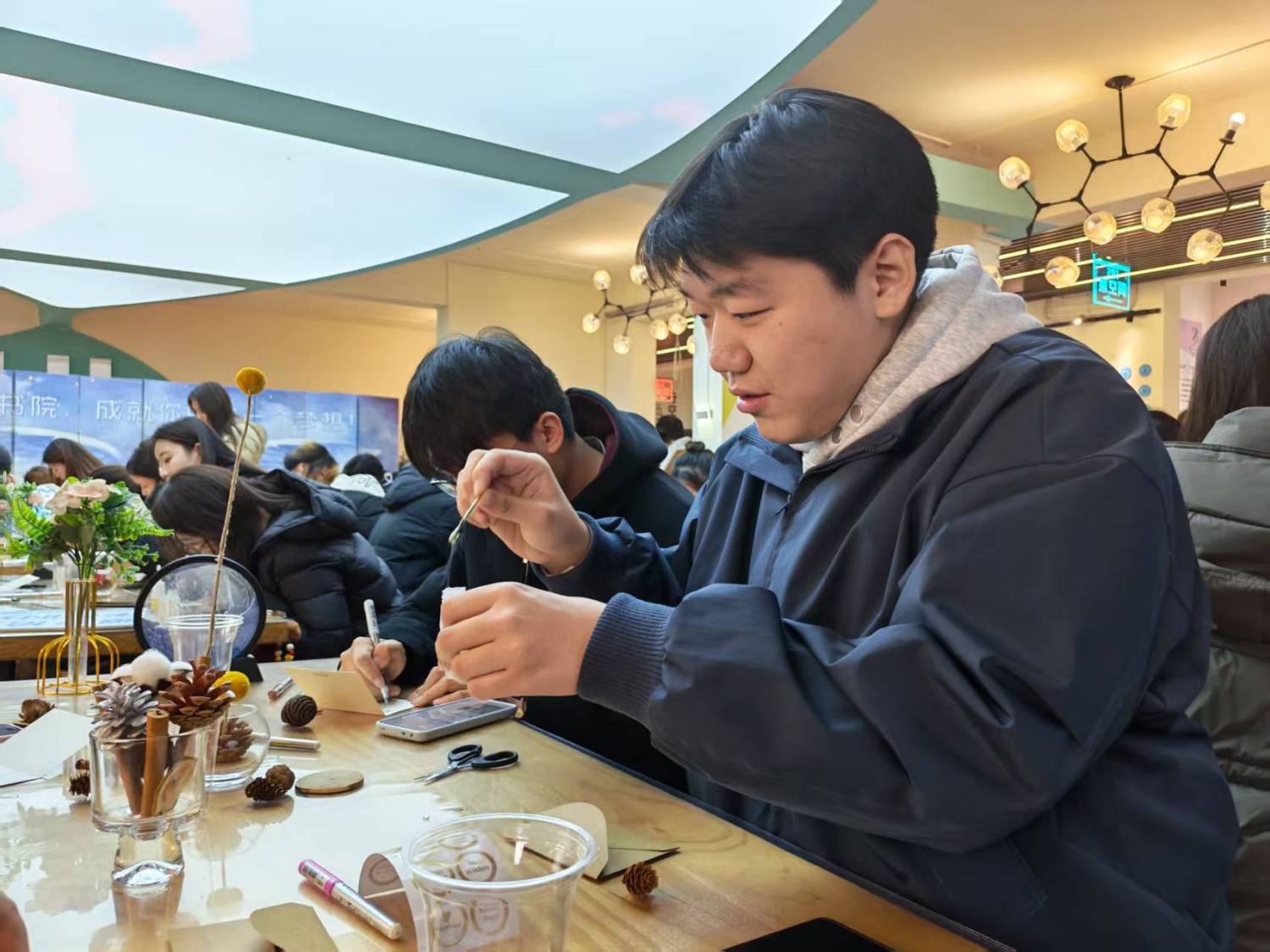 12月19日15:00-16:30,三达书院开展“创美四季·冬:暖冬拾趣,手作时光”活动,邀请六位全生异科导师与学生共同参与。活动通过“趣味竞答”“手持香薰”“寄语时光”等环节,将传统文化、创造力与冬日韵味相融合。同学们在问答中增进对冬日文化的了解;亲手制作香薰,以松果、干花等材料封存独特冬韵;并在贺卡上书写冬忆春盼,搭配自制香薰组成温馨礼物。作品分享环节中,各小组阐释创作寓意,展现审美素养与协作精神。活动以“冬藏”为脉络,引导学生在实践中感知美、创造美,增强了书院“家文化”的凝聚力,也体现了传统文化与书院育人相结合的创新路径。