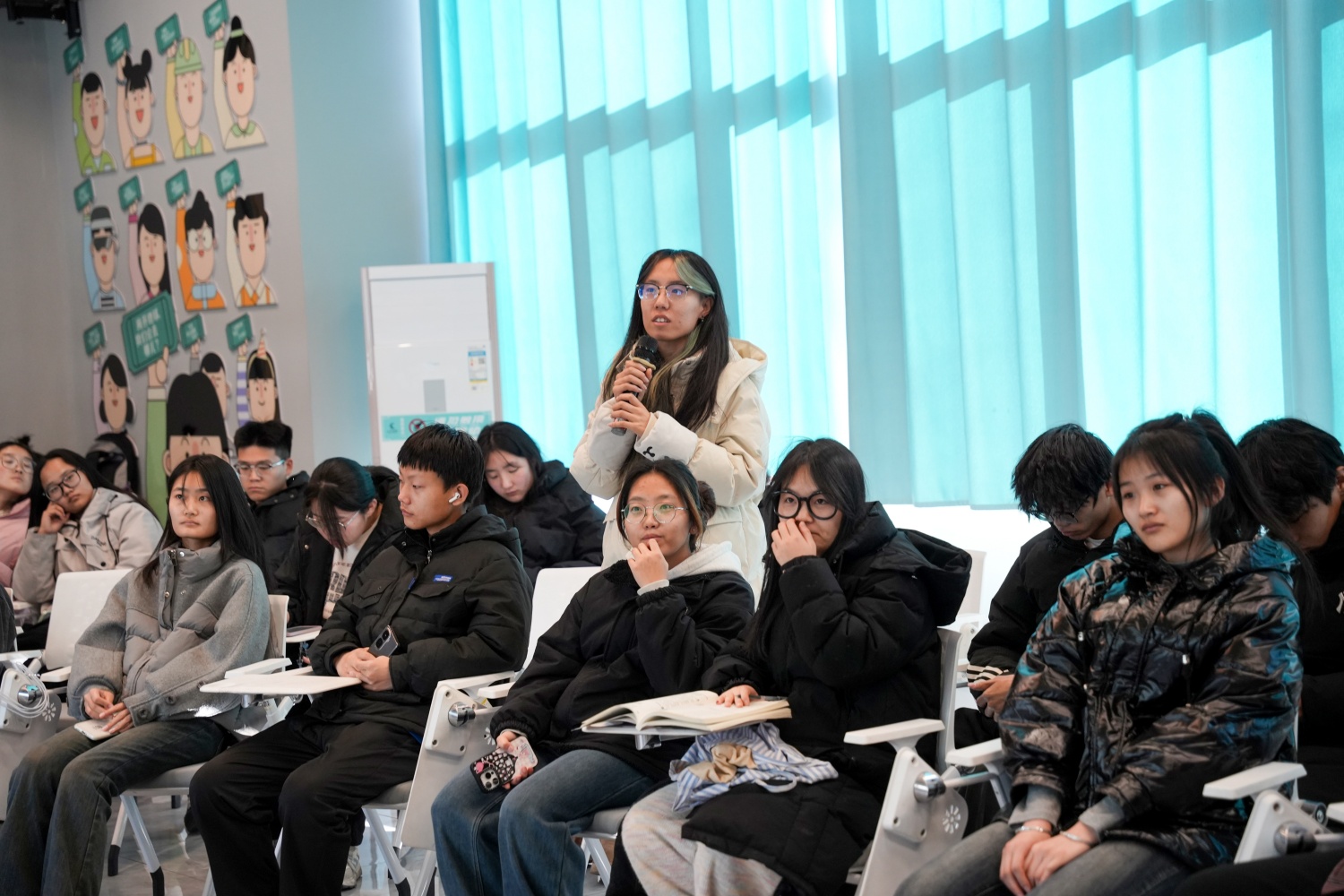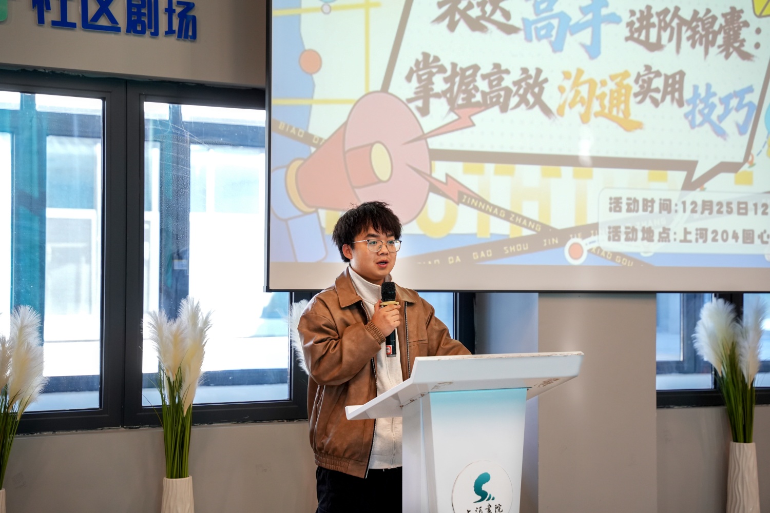 12月24日,上河书院204强势解锁!彭智鑫学长、王艺斐学姐自带满格实战buff,开讲即引爆全场,干货全程硬核输出。二人在分享中精准戳中同学们沟通高频痛点——逻辑混乱、临场失语、表达乏力,他们全程抛开枯燥理论,以场景模拟、案例拆解、互动演练开展沉浸式教学将结构化表达、临场应变、非语言沟通等实用技巧转化为一看就会、上手能用的实操方法。从勇敢开口到熟练表达再进阶到说得有感染力,整套高效沟通技巧实现即学即落地,助力同学们轻松拿捏面试、答辩、团队协作等各类场景。