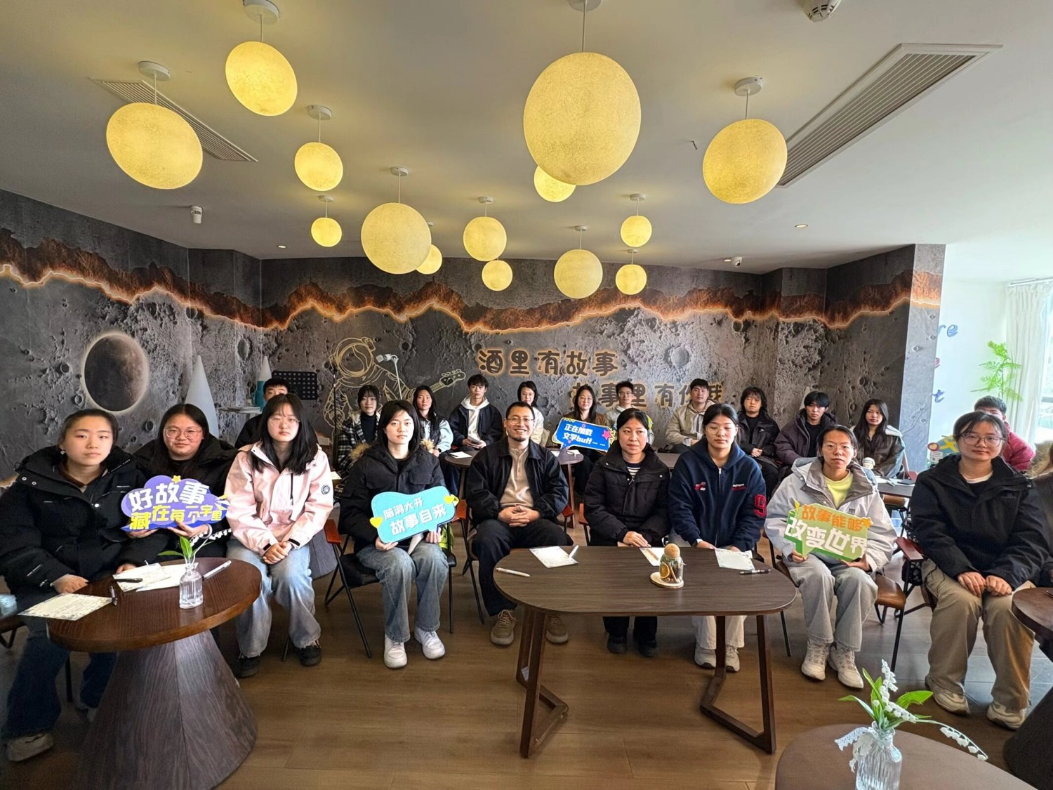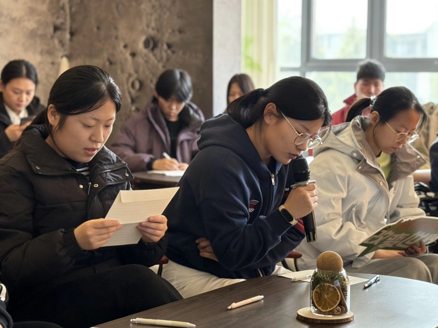 走进故事·酒馆,同学们在【三分钟微故事】中用文字把故乡装进行李,一个新的枕头、一罐家乡的酱菜,这些藏在行李箱里的物品,都是具象的思念,是走再远也能触到的温暖,当远行时才发现对家的依依不舍,但此刻的我们,还能随时踏上回家的路;傍晚来到胶囊书局参加【书间·青年共读计划】与魏老师“读书、读湖、读自己”。魏老师告诉我们“读书不急需求,这本书其实在多年以后你可能会感受到其中真正的含义”当我通过目录寻访感兴趣的章节,在宁静的文字里,遇见另一个自己,才发现讲故事的能力,从来都不是天生的,而是在一次次倾听、分享、回望里,慢慢生长出来的。