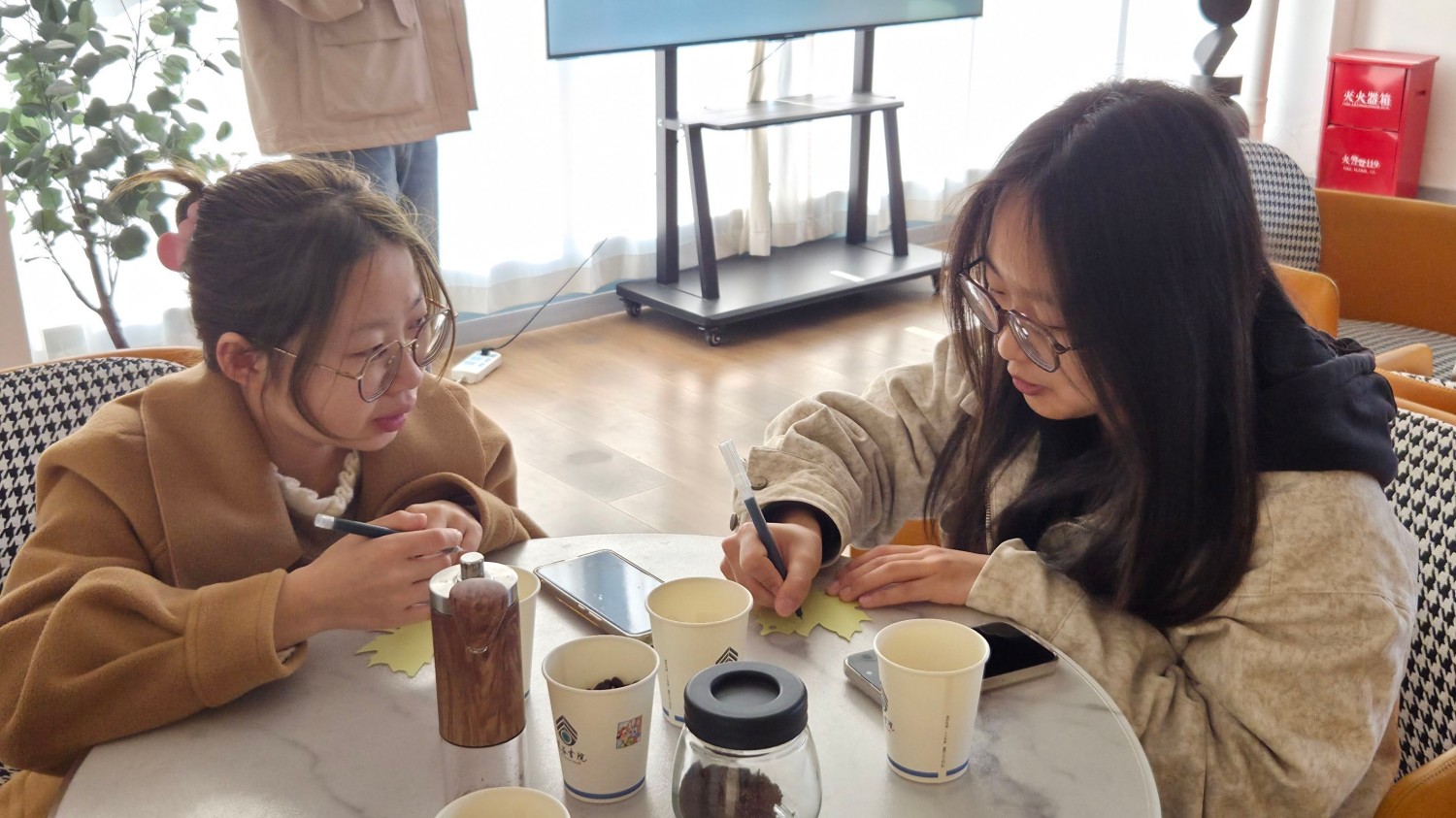 一杯咖啡的香气里,同学们交换着细碎的生活感悟,魏老师分享自己关于咖啡的尴尬往事谈到虽然自己并不是很懂咖啡,却希望自己像美式咖啡一样简单追求效率的人;而在魏老师担任一日店主的故事商店中,一张“人生水洗标”,让我第一次认真梳理自己的经历,原来那些看似平凡的日子,早已经写满了属于我们的独家故事。表面很外向的同学却在卡片里写下喜欢一个人独处,看似矛盾的心理却是一个人照顾自己的独特方式。或许在未来我们与魏老师在半杯故事馆与小羽毛·故事巢里畅聊的日常也会成为我们的文字。