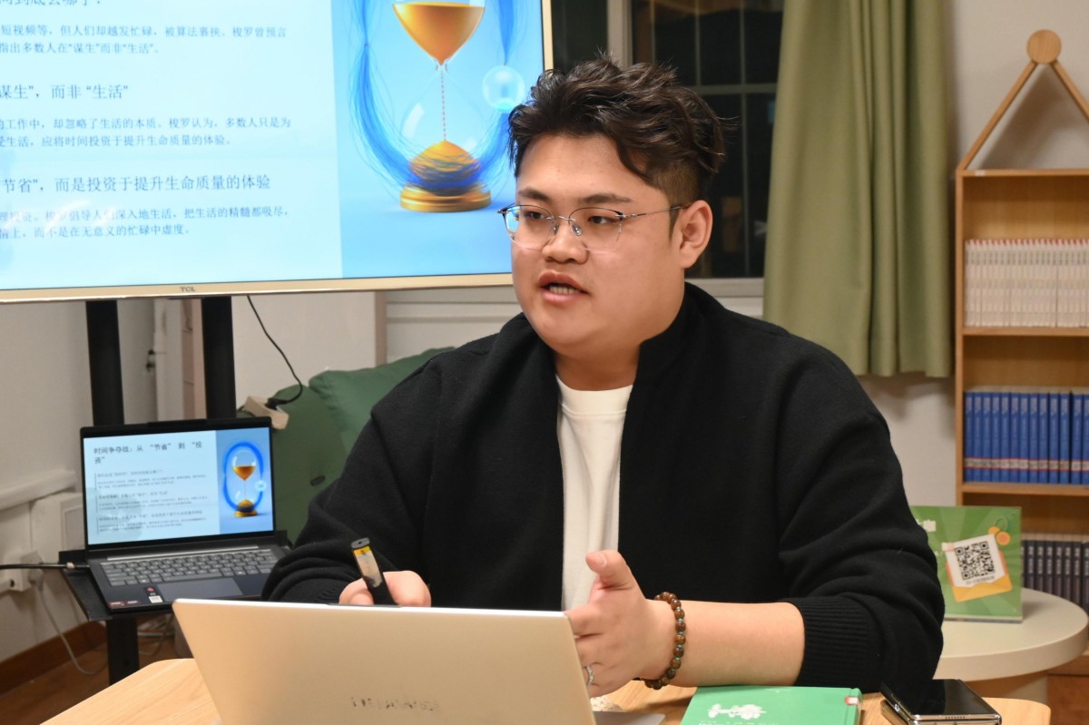 以前我总抱怨“时间不够用”,以为是自己任务太多。直到吕老师说:“不是时间不够,是心被填得太满。”原来我一直在用忙碌逃避内心真正的选择。今后,我会试着每天留半小时,放下手机,纯粹地读几页纸质书;周末和好朋友去校园里散散步,聊聊天。我想,这种“慢”不是躺平,是把自己还给自己。