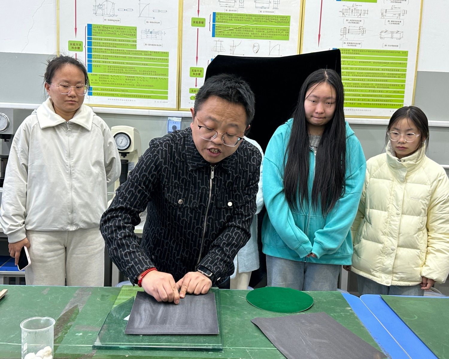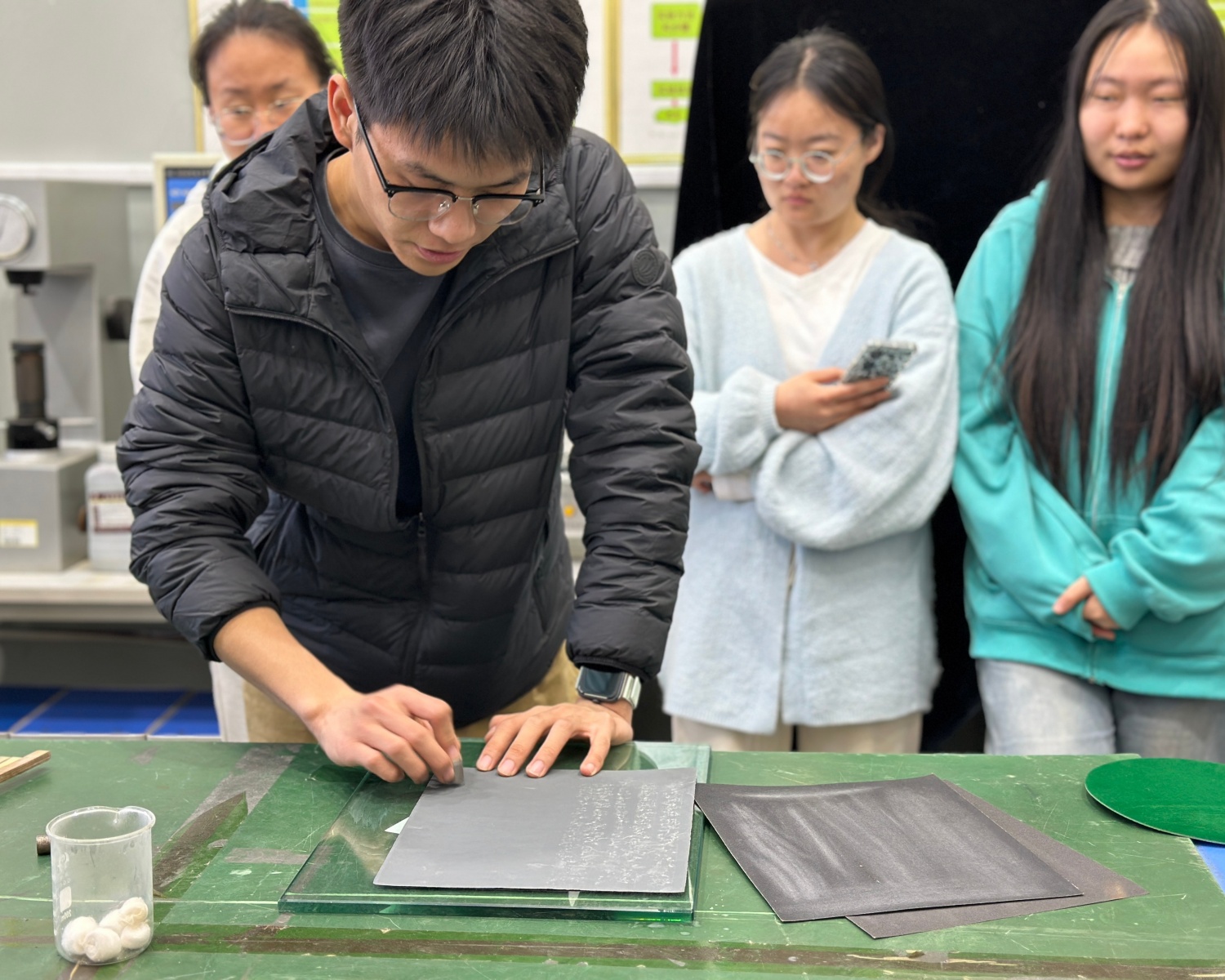 随后的实践教学环节,参训师生分组前往金相实验室开展首次实操训练。在薛卫刚、李海康等专业教师指导下,同学们认真进行样品制备、显微观察等操作,打磨样品、观察金相组织、交流制备技巧,全程尽显严谨的科学态度,现场学习氛围浓厚。