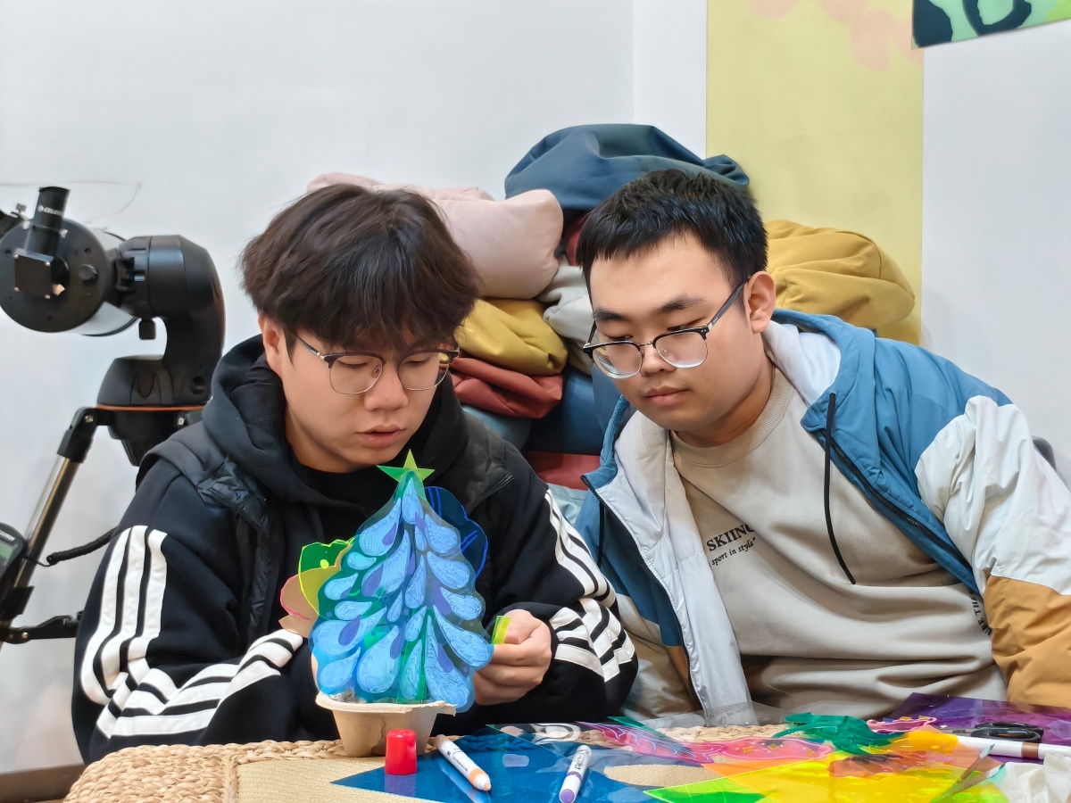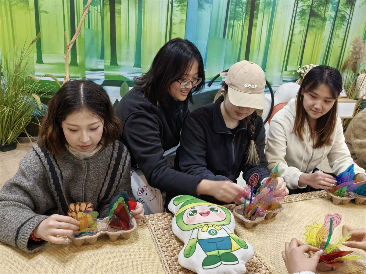 “每一片绿叶都有情绪,每一种色彩都藏心声”。在3月18日至21日世界森林日期间,大健康学院、白燕书院在白燕书院114&More・未来探寻室,联合主办“拆盒解码,遇‘健’情绪 RGB”主题活动。大健康学院辅导员刘悦老师和白燕书院的发展导师王宣皓老师一同带领同学们以玻璃纸为创意载体,融合情绪表达、趣味闯关与手工创作,在轻量互动中解压抒怀,以小见大关注森林保护与生态可持续发展。