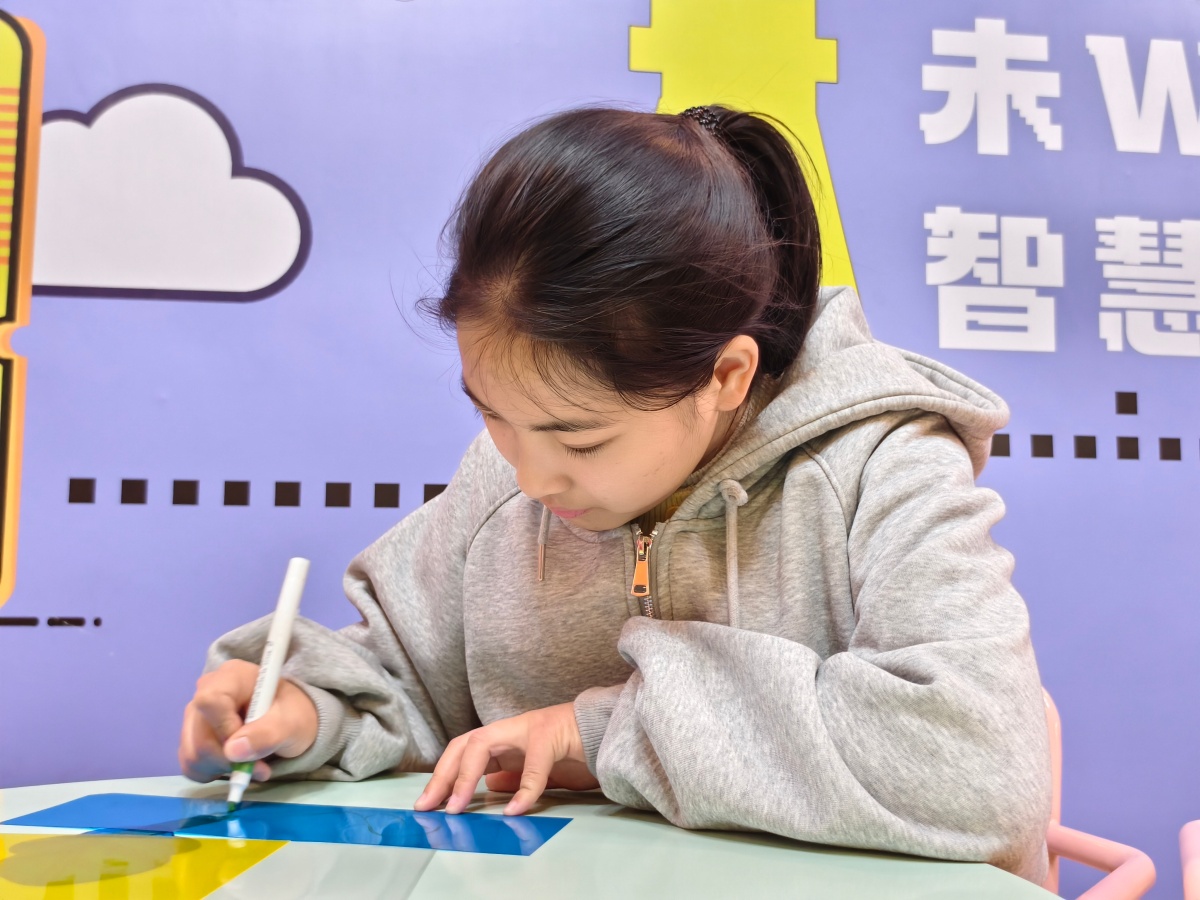 尹佳璐同学正低头端详手中刚领取的“情绪盲盒”。盲盒内预置不同色彩的玻璃纸——翠绿对应“平静”,深绿对应“沉思”,枯黄对应“焦虑”,嫩绿对应“希望”。“我以前从没想过,森林里的每一种颜色都能对应一种心情。”她一边说着,一边将手中的翠绿色玻璃纸举到灯光下,光影透过玻璃洒在桌面上,像一片小小的林间光斑。