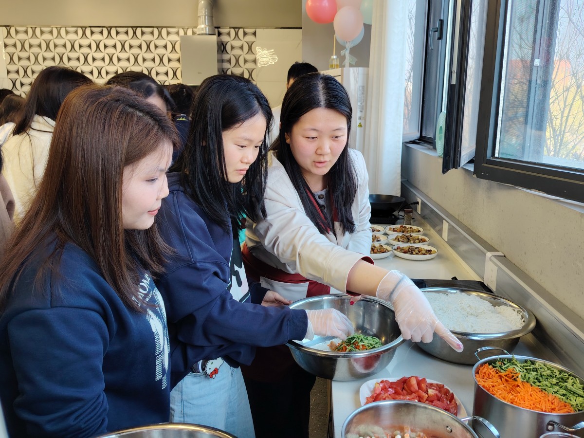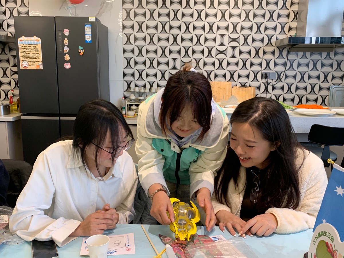 “美食总司令”张洁和巩文韬穿梭督战,现场秒变“国际厨艺交流峰会”:中国同学传授炸糍粑的火候秘籍,德国伙伴分享打发奶油的独门技巧。欢笑声与食物香气在空中交织缠绕,谱写成这场生日会最动听的“国际欢乐颂”!