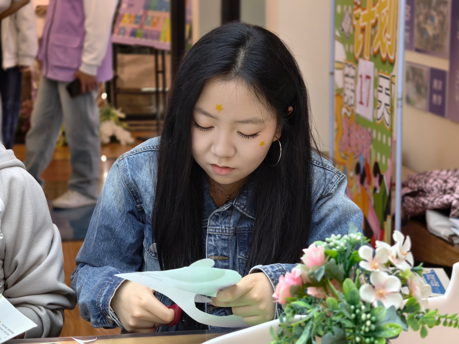 孔霞老师现场示范创作步骤,从轮廓定位、素材选择到色彩搭配、细节装饰逐一讲解。同学们根据所学的形式美法则,自主搭配色调、排布元素,在拼贴过程中有意识地运用对称、对比、节奏等规律,将理论知识转化为直观作品。大家相互交流、交换素材,在动手实践中深化对形式美的理解,体验从构思到成型的完整创作过程。