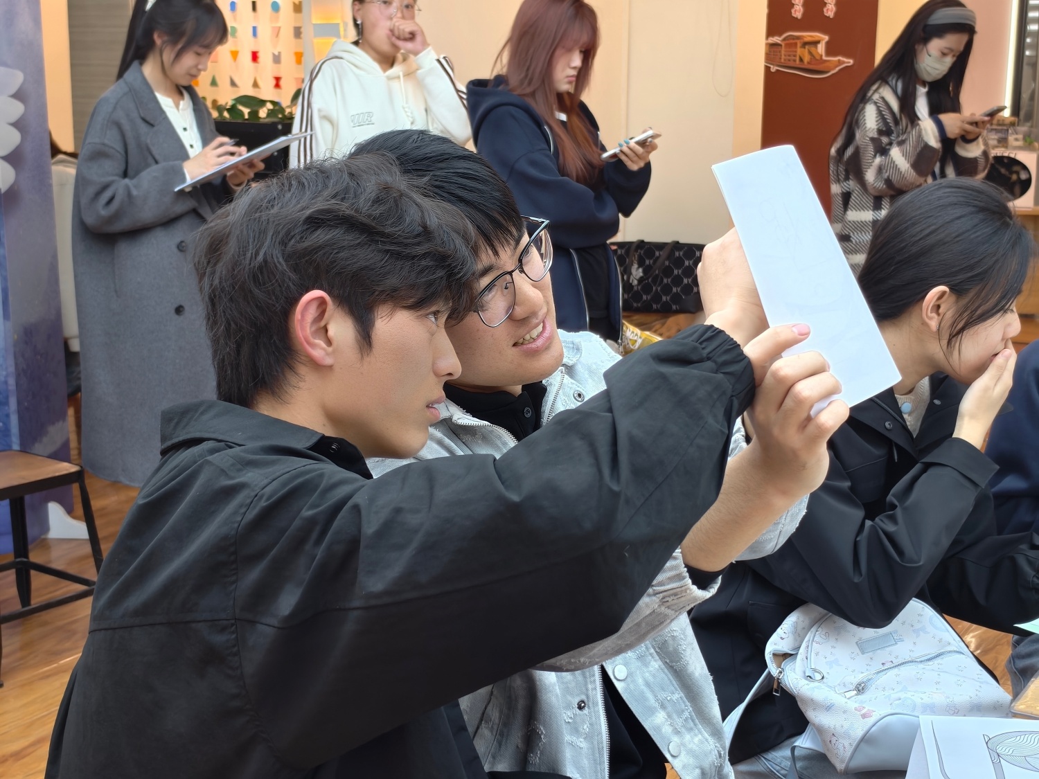 孔霞老师还引导学生主动分析作品,辨析其中的美学规律,现场氛围轻松活跃。同学们在直观感受与理性分析中,逐渐理解好的设计并非随性而为,而是法则与创意的巧妙融合。