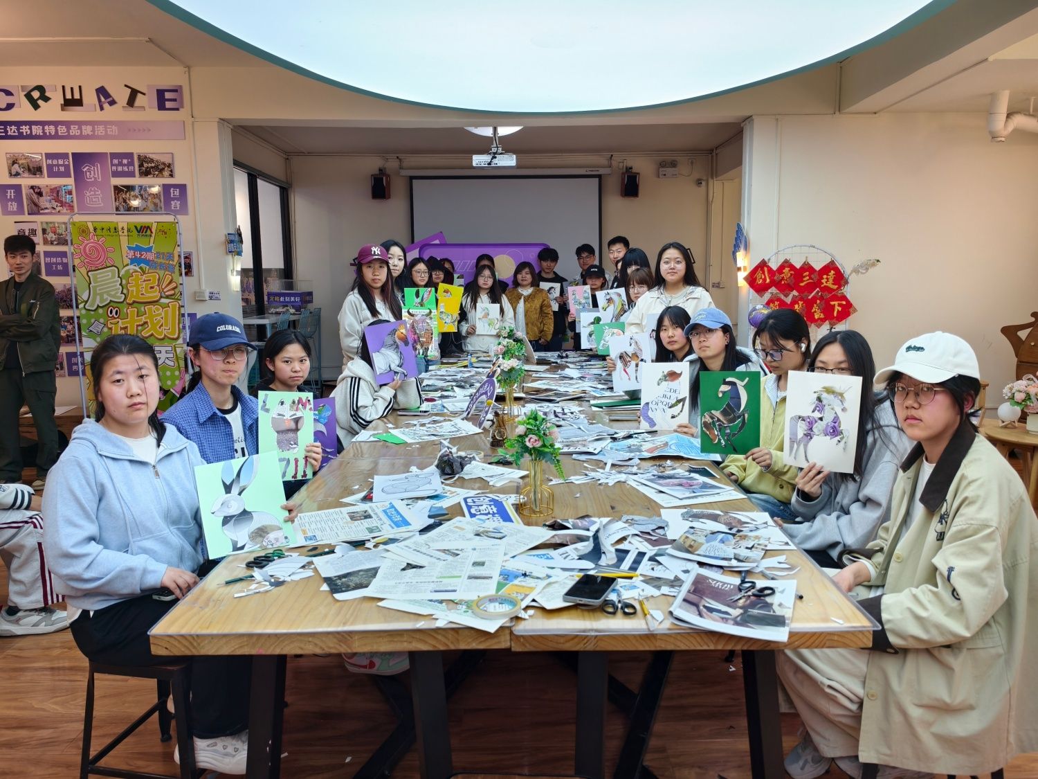 如果说第7期聚焦理论知识的传授,第8期则侧重实践能力的锤炼。3月25日16:30,三达书院在意空间举办创意课堂(第8期)“秩序与混乱”拼贴画创作活动。由理论转向动手实践,孔霞老师带领同学们开展拼贴装饰创作。大家利用卡纸、报纸、期刊、彩纸等材料,以动物形象为基础,通过剪裁、拼贴、添画等方式进行创意设计。