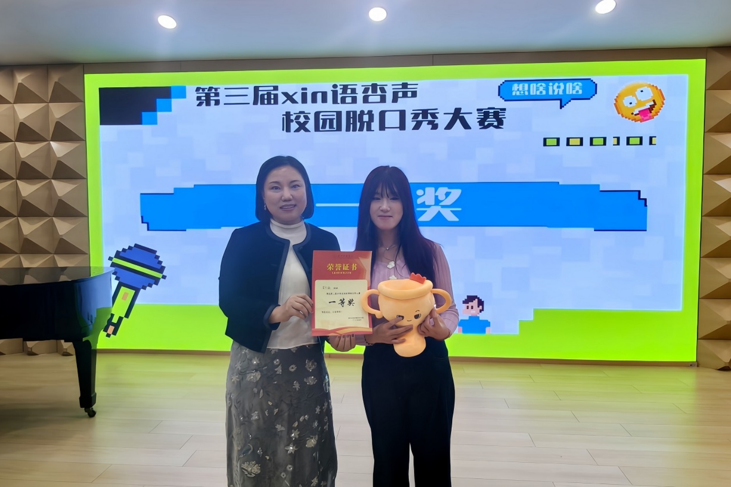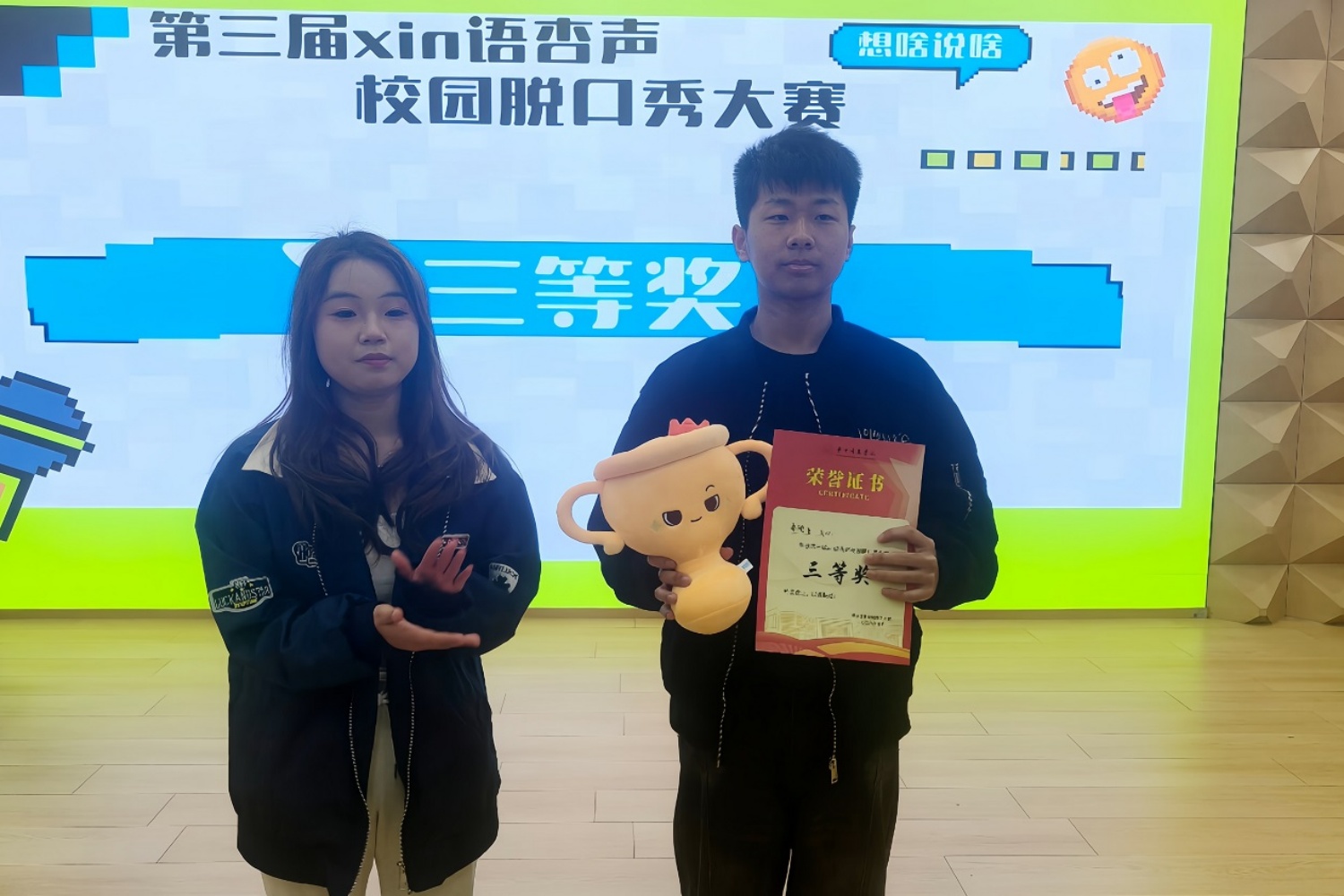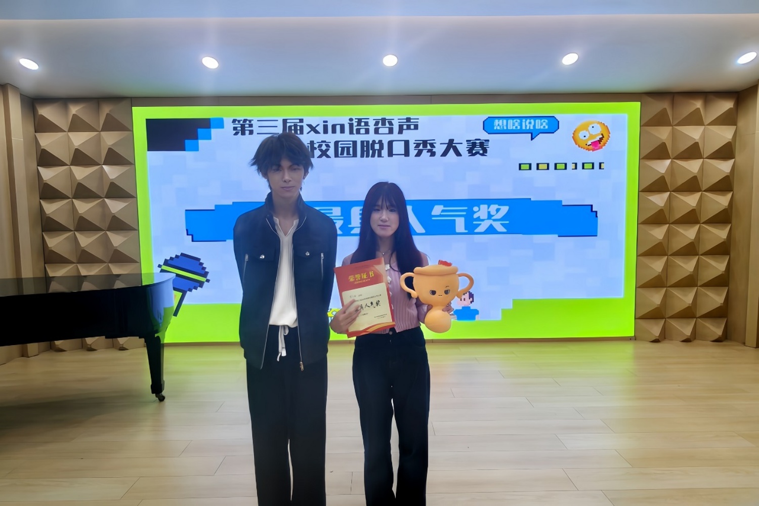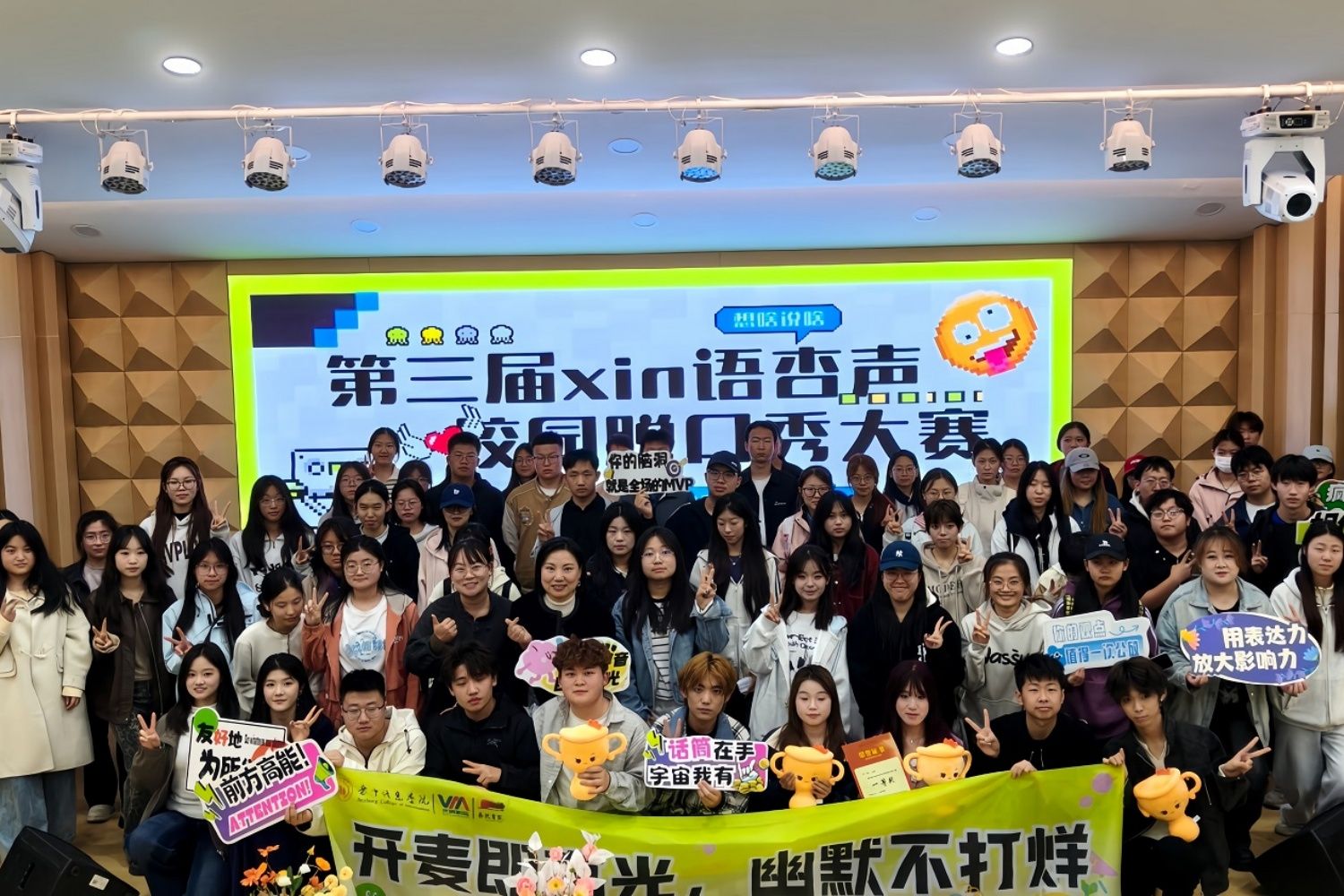 为给热爱表达、热爱幽默的同学们提供展示自我的平台,让青春的声音被听见、青春的风采被看见,4月8日17:00-18:30,xin语杏声第三届校园脱口秀大赛决赛在学校4’33”音乐厅顺利举办。本次比赛以青春为底色,以幽默为桥梁,为在场师生带来了一场笑点密集、创意满格的视听盛宴,生动展现出当代大学生鲜活有趣、朝气蓬勃的精神风貌。杏花书院名誉院长北北老师、杏花书院发展导师付莉媛,以及淬炼商学院·国际商学院的杨张博、罗秀伟两位同学担任本次比赛评委,全程为选手们点评指导、保驾护航。张文萱、杨云博、刘滨豪同学担任助演嘉宾。