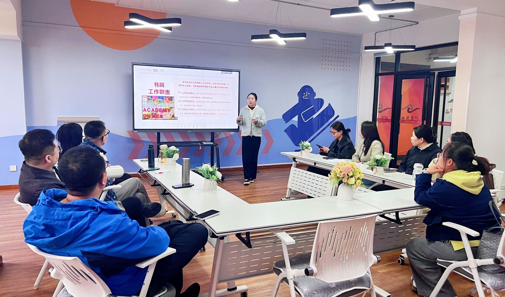 白燕书院全生异科导师代表赵瑶瑶老师立足学生成长需求,深入介绍“专注力”培育的工作重点,构建学业指导、职业发展、心理关怀、经典阅读四位一体的全周期育人模式。之后导师团队也将针对不同年级书院学子需求,开展学业规划、求职技能训练、心理疏导减压、经典阅读分享等特色活动,依托书院阅读盒子、文体活动等平台提升学生专注力;联动学院辅导员、书院行政力量形成全方位育人网络,切实增强学生归属感与成长动力,助力学生以专注姿态应对学业、就业等成长关键挑战,实现全面发展。
