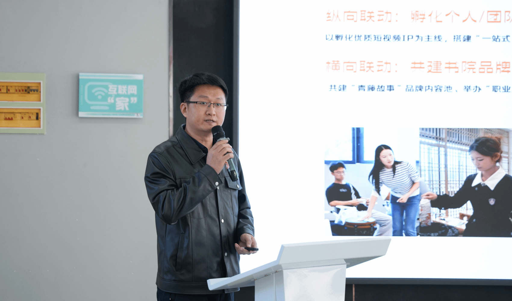 青藤书院全生异科导师代表王德照老师聚焦学生综合能力提升,锚定“营销力”的育人核心,统筹介绍影视制作、表演艺术、形象管理、供应链管理、数学思维、营销逻辑等全链条专业异科导师资源。书院全生异科导师团队将围绕短视频IP孵化、品牌内容创作与职业实训三大主线开展工作,以孵化优质短视频IP搭建一站式成长流水线,覆盖前期定位策划、中期制作拍摄、后期运营复盘全流程;同时打造青藤故事品牌内容池,举办职业综合实训工作坊,构建从策划到运营的完整实践平台,全方位提升学生自我营销、内容创作与职场综合竞争力。