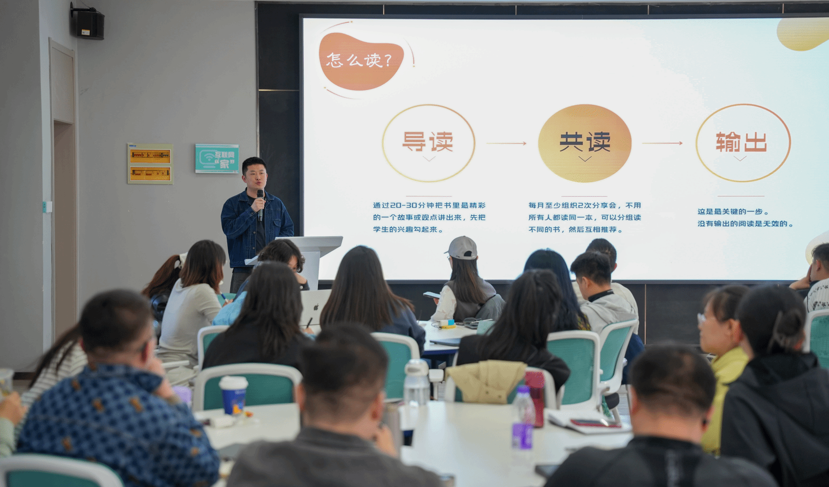 校园经典阅读写作综合办公室负责人杨美斌老师以《从“阅”见到“悦”见——做学生愿意跟随的“共读人”》为主题,围绕学生阅读素养提升与成长发展,向在座导师系统分享了开展学生阅读指导的有效路径与实践方法。杨老师指出:异科导师可依托学校经典阅读写作计划与大咖传记阅读计划双线并行的育人载体,采用分年级、分专业、重兴趣、强应用的分层培养思路,面向大一大二学生重点进行阅读兴趣启蒙,对大三大四学生则侧重实践应用层面的引导,让阅读的内容与形式更贴合学生的成长节奏。他倡导推行“导读、共读、输出”三步走阅读模式,鼓励导师们运用情景剧场等沉浸式阅读活动,结合书院伴读等特色平台,引导学生在沉浸式体验中感受阅读的魅力,提升学生在阅读过程中的参与感。