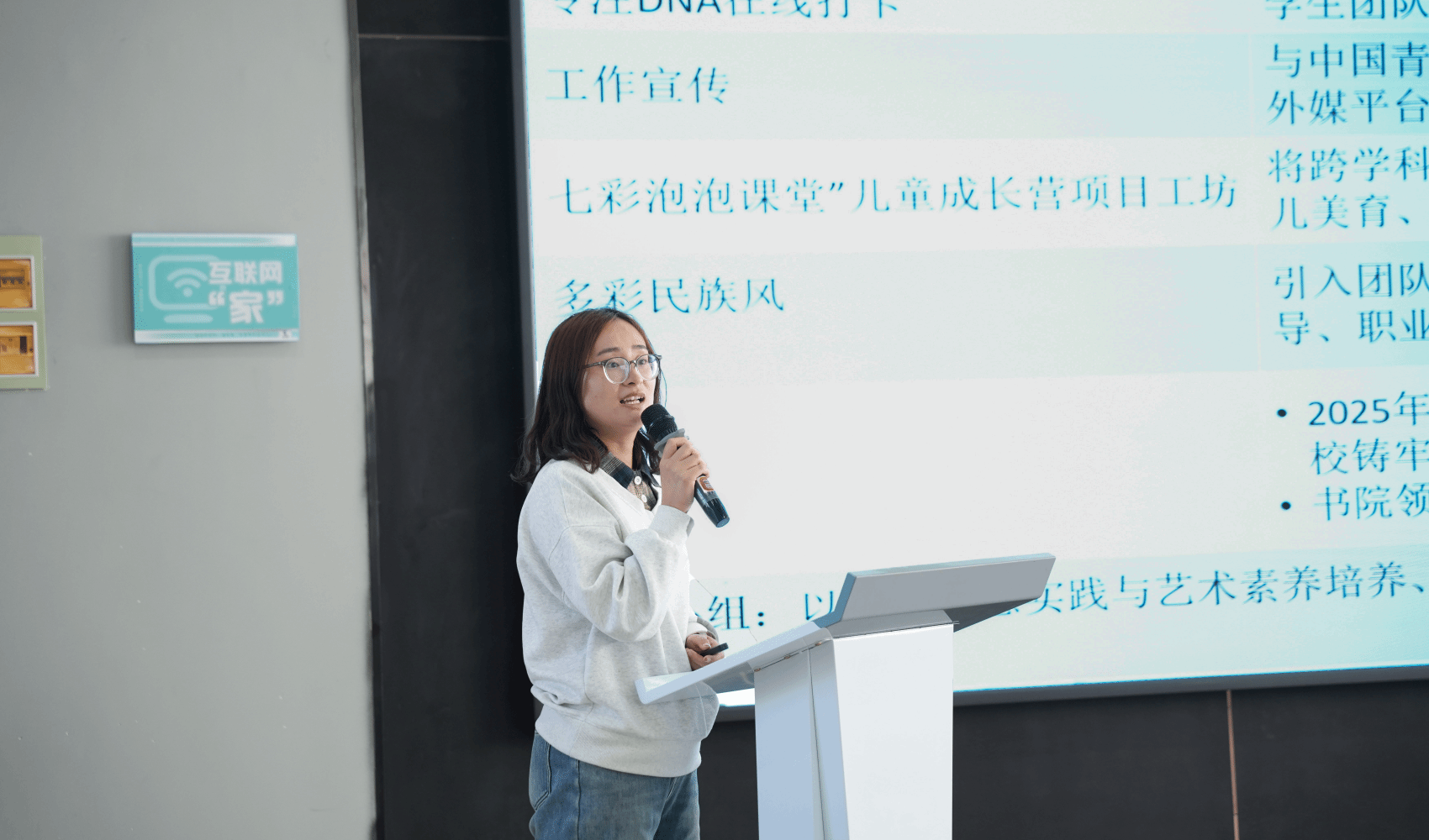 三达书院全生异科导师代表崔馨月老师结合书院育人定位,阐述以“创造力”为核心的异科工作方向,依托心理学赋能、艺术传媒创作、赛事统筹运营、音乐素养培育、影视创作实践等跨专业导师矩阵,把原创文化项目作为核心抓手,贯通策划、创作、展演全流程实践环节。同时,围绕“善探索、会创造、敢尝试”的育人目标打造融合式主题工坊,推出原创微电影、原创音乐合集等文化名片,分层对接学生竞赛、考研、就业等个性化发展需求,构建生态化、项目化、人格化、职业化的可持续创造力育人生态,全面激活学生创新潜能与综合发展动能。