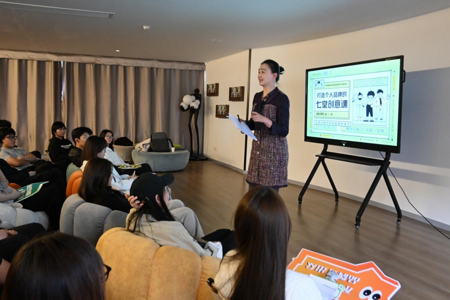 在信息过载的时代,我们每天接收无数声音,却也在无形中渐渐“失声”。这一季,我们不止于“见”,更关注“见”背后的思考、辨析与表达。因为观点,才是真正的“护城河”;思想,才是别人拿不走的竞争力。4月15日14:30,“打造个人品牌的七堂创意课(第5季)”第①讲在毣谷书院2F 故事·时“间”温情开启。杏花书院综合办公室主任聂宁以一场别开生面的思想之旅,带领同学们在趣味互动中打破信息茧房、梳理认知框架、提升表达逻辑,完成从被动吸收到主动思考的蜕变。