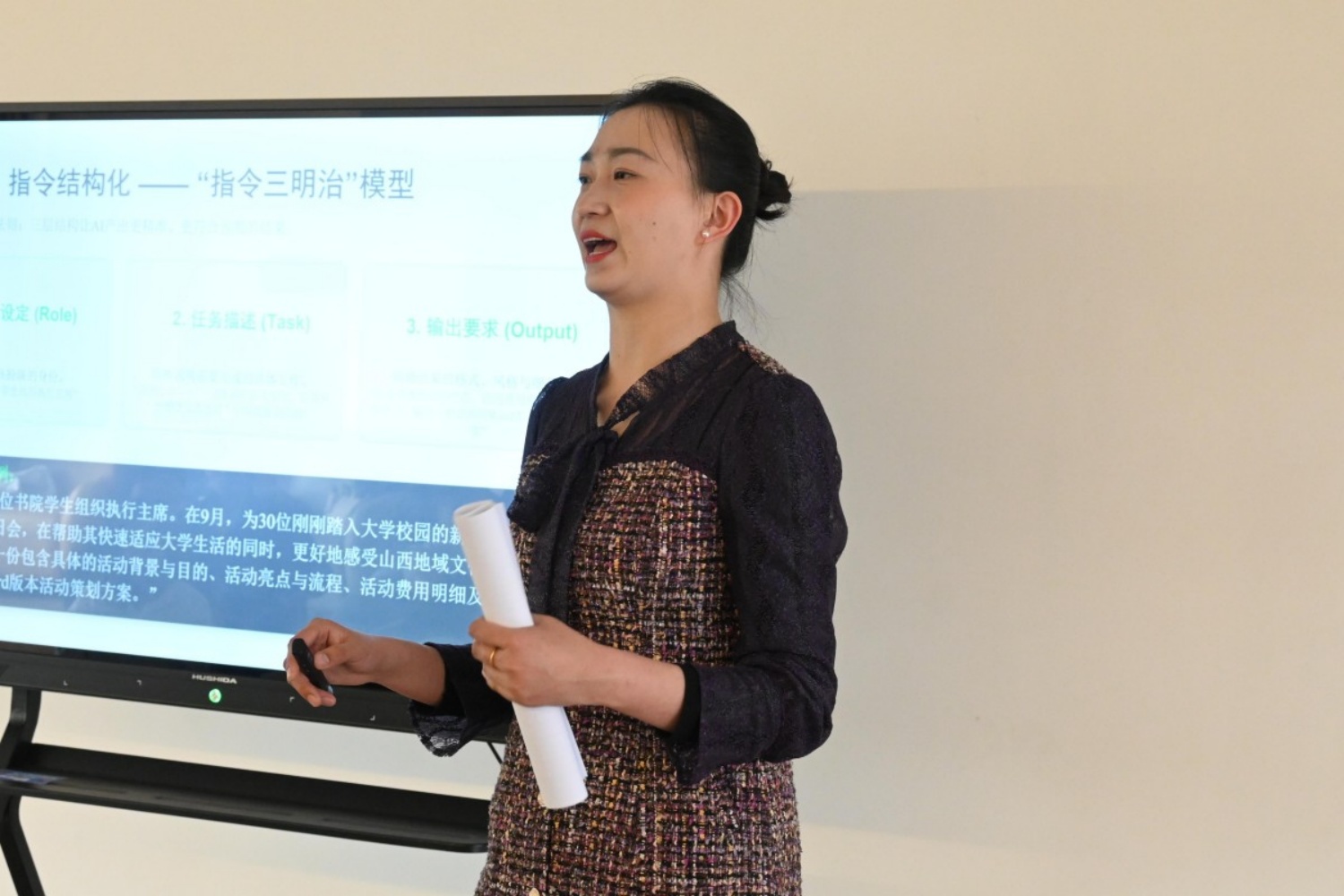 “刷不完的短视频、理不清的知识点……我好像知道很多,却又说不出什么。”“你是否也有这样的‘认知内耗’?”聂老师一针见血地指出:真正的个人品牌,不靠信息堆叠,而靠思想厚度。她从“认知收集”到“分类梳理”,一步步带领同学们搭建个人认知素材库,把零散信息串联成属于自己的思维地图。在“石油涨价利弊”的讨论中,不同观点相互碰撞;在AI实战环节,同学们学会了“先有思维框架,再借技术优化”,让工具为人所用,而非被信息淹没。守住自己的思考,比找到标准答案更重要。