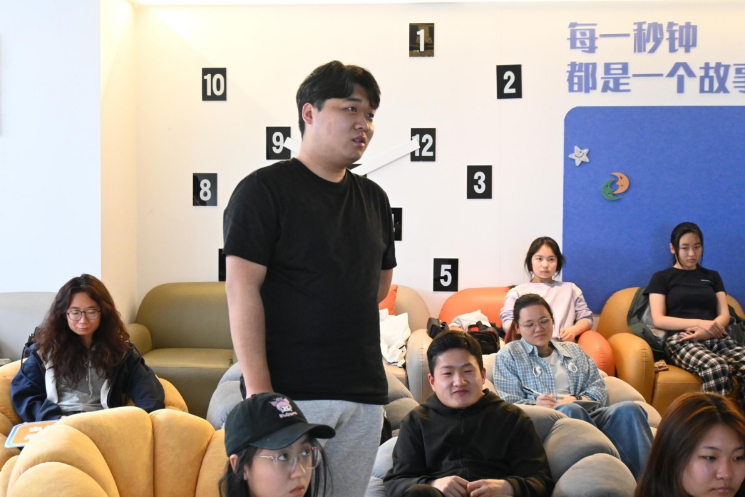 “如果你是一种动物,你觉得你是什么?”活动伊始,聂老师以一个轻巧又走心的问题,引导同学们向内觉察、勇敢表达。轻松的互动迅速打破了陌生与沉默,课堂氛围活跃起来。当话题转向美伊关系时,同学们的视角不再停留于宏观政治与国际战略,而是投向更具体的普通人:从战争带来的伤痛记忆,到普通民众的生活处境,再到人们对和平的深切渴望。视角在交流中打开,思考在倾听中生长。那一刻,讨论不再抽象,而是充满了温度与人性的回响。我们不止“看见”冲突,更“看见”了理解与共情的可能。