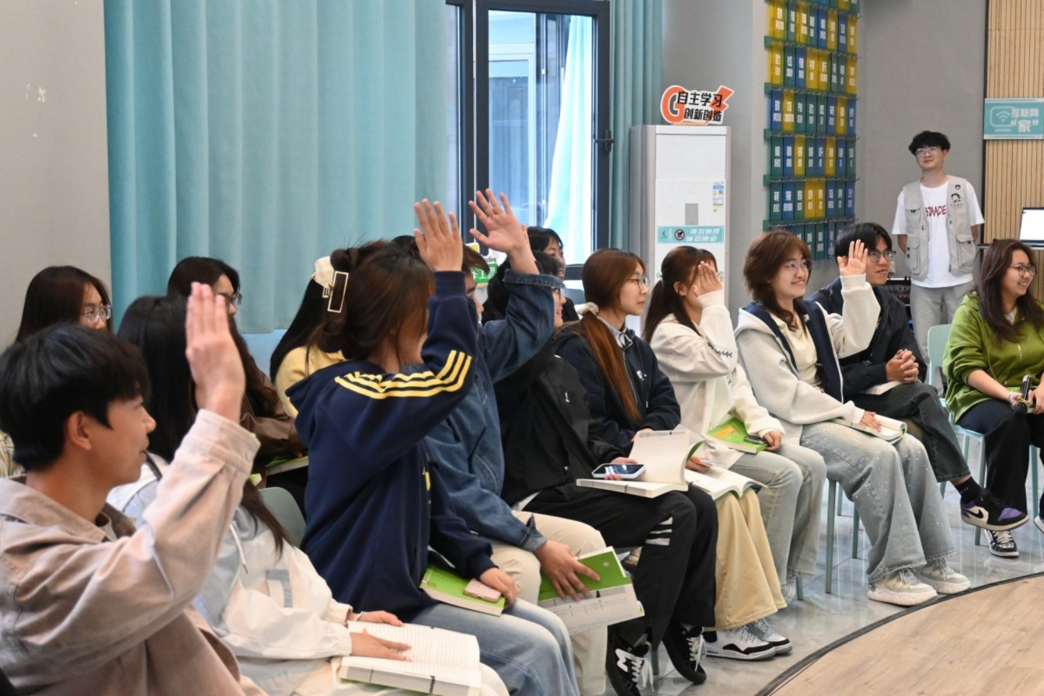 当古老的《诗经》遇见青春智慧,当隽永的诗行邂逅科技灵光,一场关于阅读的春日邀约,在书香与诗韵中悄然展开。4月21日16:00,青藤书院携手智能工程学院在上河书院205 圆心·青春社区剧场开展“阅读‘AI’发电 智慧‘营’全场”主题活动。千年诗句融入现代科技表达,曾经停留在课本上的古老文字,正被赋予可触、可感、可对话的体温,化作可触可感的画面与共鸣。在抽卡的期待中,在诵读的声韵里,在问答的思索间,经典被重新赋予呼吸,诗意的种子悄然落入心田。