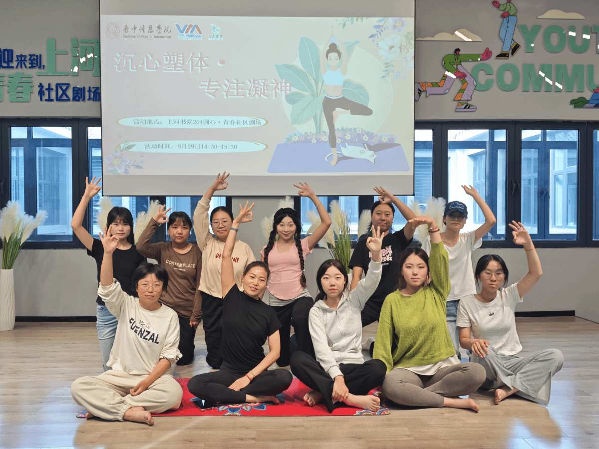 “准备好和自己的身体打个招呼了吗?”项目导师刘红霞老师轻快的声音瞬间点亮了现场。9月29日14:30,上河书院204圆心·青春社区剧场摇身一变,成为充满活力的青春能量站——【伽人能量站】第12期“沉心塑体·专注凝神”火热开启!10名学员在刘老师的引领下,通过呼吸与舒展的律动,开启了一场独特的“从心出发”身心唤醒之旅。瑜伽垫整齐铺开,灯光柔和洒落,一个专属的宁静场域在专注的氛围中悄然生成。