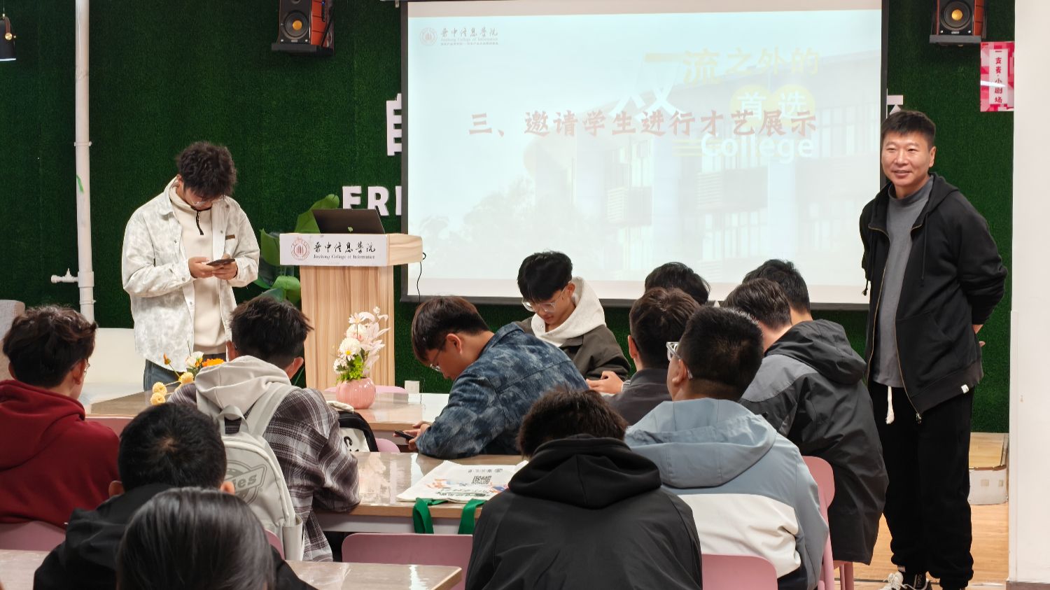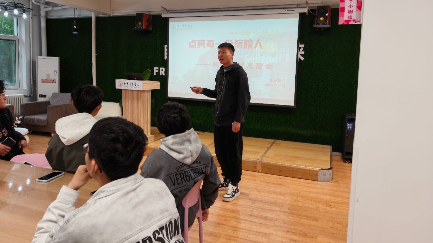 夏日的喧嚣尚未完全褪去,蝉鸣犹在耳畔回响,秋意却已悄然而至。2025年10月10日10:00智能工程学院异科导师张振国老师在杏花书院表达力大厅开展了一场以“点亮每一个信院人”为主题的见面会,与学生亲切互动,展开了一场亦师亦友的交流。
