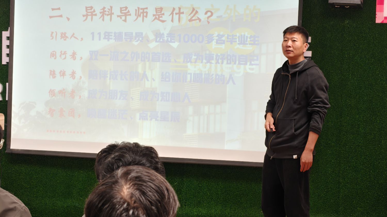 异科导师究竟是什么呢?针对这一疑问,张老师给出了详尽的诠释,将其定义为“引路人、同行者、陪伴者、倾听者以及智囊团”。张老师进一步解释道,作为引路人,异科导师会凭借自身丰富的经验和专业知识,为学生指引前进的方向,帮助他们在学术和职业发展的道路上少走弯路。作为同行者,会与学生并肩作战,共同面对学习和生活中的种种困难与挑战,让学生在成长的道路上不感到孤单。作为陪伴者,会始终关注学生的身心健康和个人成长,在学生需要的时候给予温暖的陪伴和关怀。作为倾听者,会认真倾听学生的心声和烦恼,为学生提供一个可以倾诉的安全空间。作为智囊团,会在学生遇到决策难题时,提供全面、客观的建议和思路,助力学生作出明智的选择。