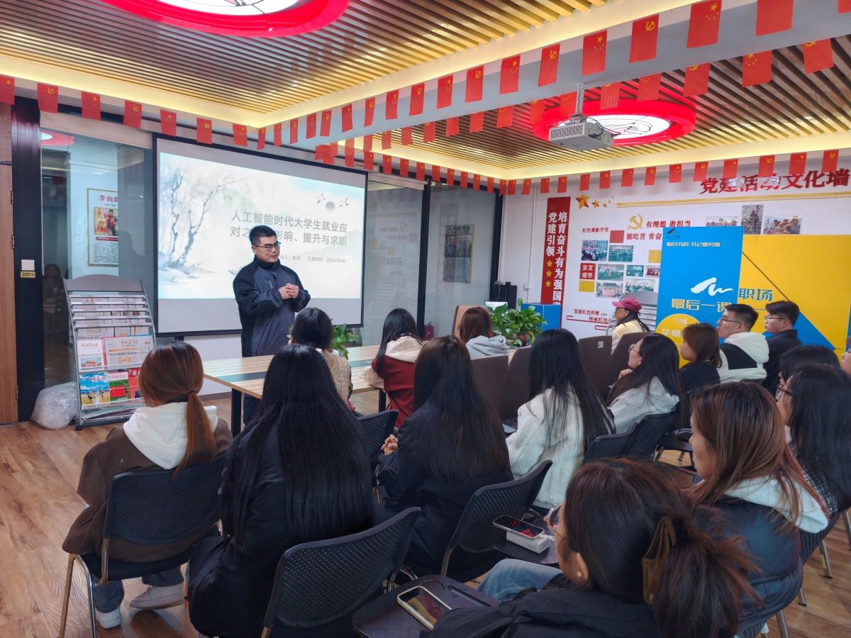 10月10日14:30,太行书院于社区功能型党支部举办了【职创型·星工厂】第3期 聚焦核心能力 护航职创之路活动。本次活动特邀异科导师张虎老师担任主讲人,作为信息工程学院的老师,张老师结合专业知识围绕人工智能时代下大学生就业的机遇与挑战,为同学们搭建成长赋能的实践平台,助力职业发展。
