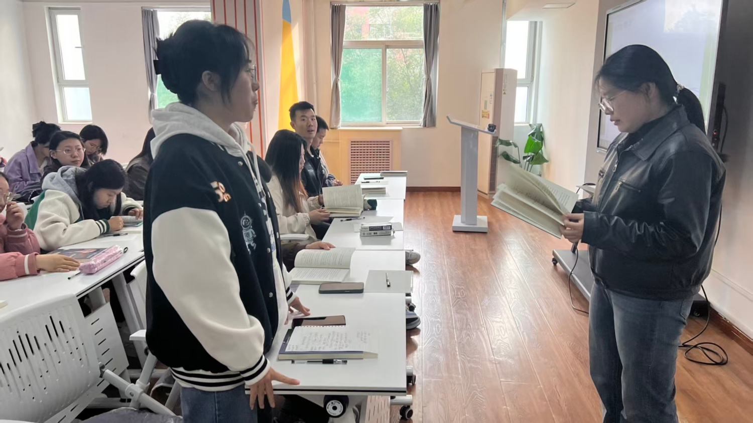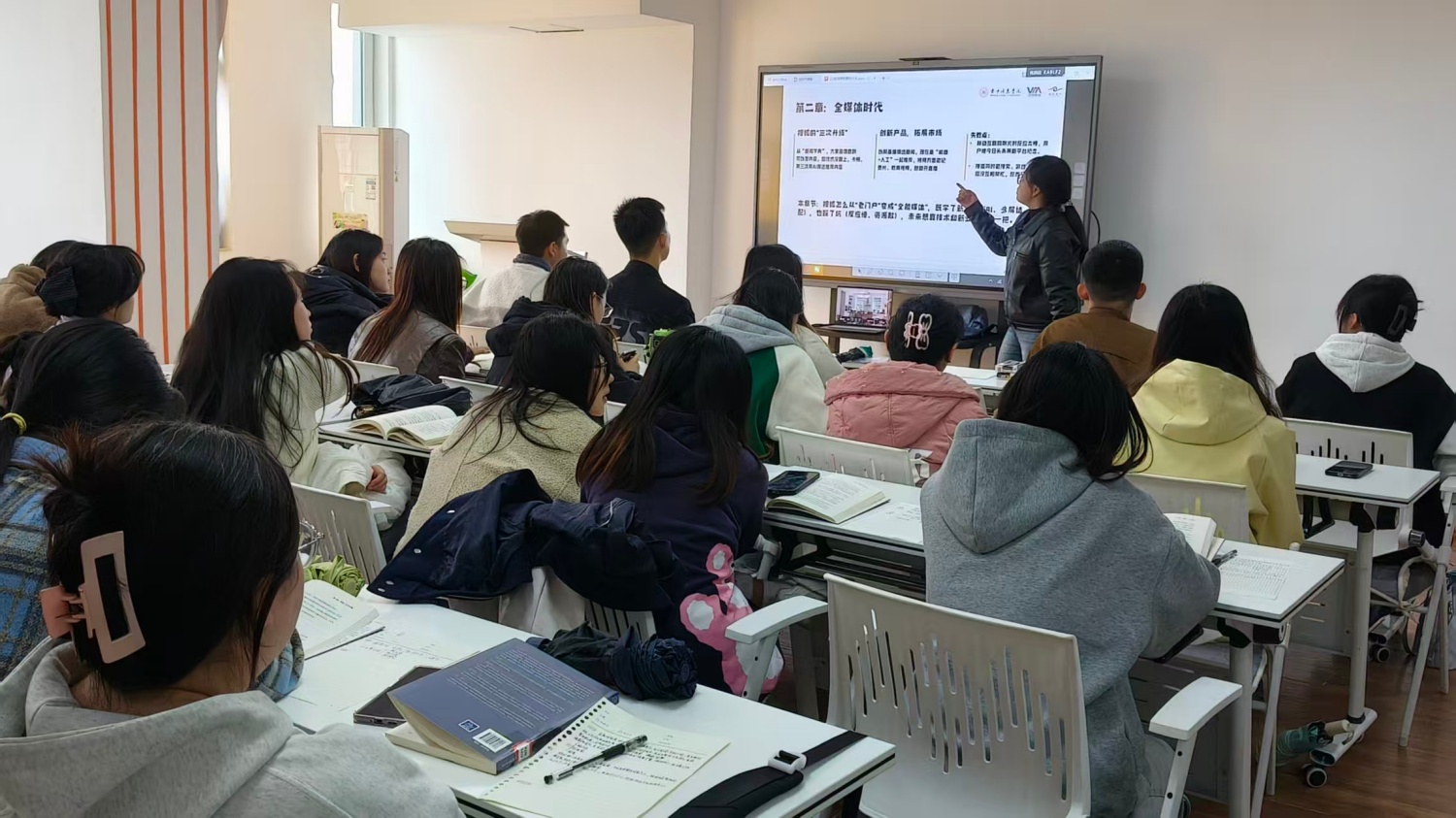 在互动讨论环节,秦老师以问题为引,巧妙抛出“传统企业如何破局互联网转型困局”“青年创业者需锤炼哪些核心素质”“张朝阳的起伏经历对大学生职业规划有何启示”三大议题。面对同学们的踊跃提问与观点分享,老师始终耐心倾听、细致拆解,既结合张朝阳的创业实践给出具体分析,又引导大家跳出案例本身,从更长远的视角审视成长与发展。同时,她还特别鼓励同学们以张朝阳为镜,学习其在逆境中不退缩、于挑战前敢突破的精神,在未来的学习与工作中始终保持积极进取的心态,勇敢面对可能遇到的挫折与考验。