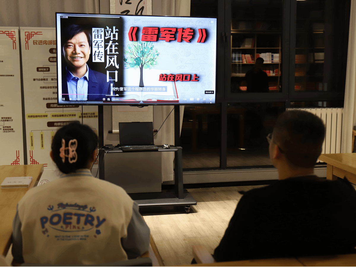 活动伊始,上河书院发展导师李淳便引导学子们静心品读《雷军传》,让同学们通过文字与这位传奇企业家展开了一场深度对话。“互联网思维七字诀”“风口理论”“铁人三项商业模式”等核心概念在书页间渐次呈现。在同学们对雷军及其商业理念有了初步认知后,一段记录雷军从青年时代至今的创业历程的讲解视频,将大家带入了更加立体的认知境界。从金山软件的青涩岁月到小米科技的横空出世,从中关村的劳模到中国科技行业的领军人物,雷军的创业历程如同一幅波澜壮阔的画卷徐徐展开。视频生动展现了这位时代企业家如何把握科技浪潮,在移动互联网的风口上开创出一片新天地。不仅让同学们对雷军的创业历程有了直观认识,更激发了大家对商业逻辑的深入思考。