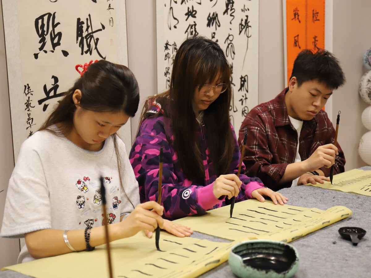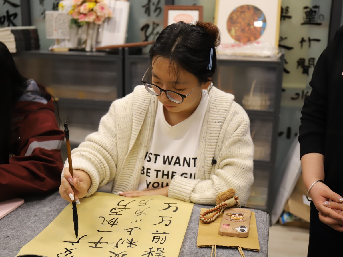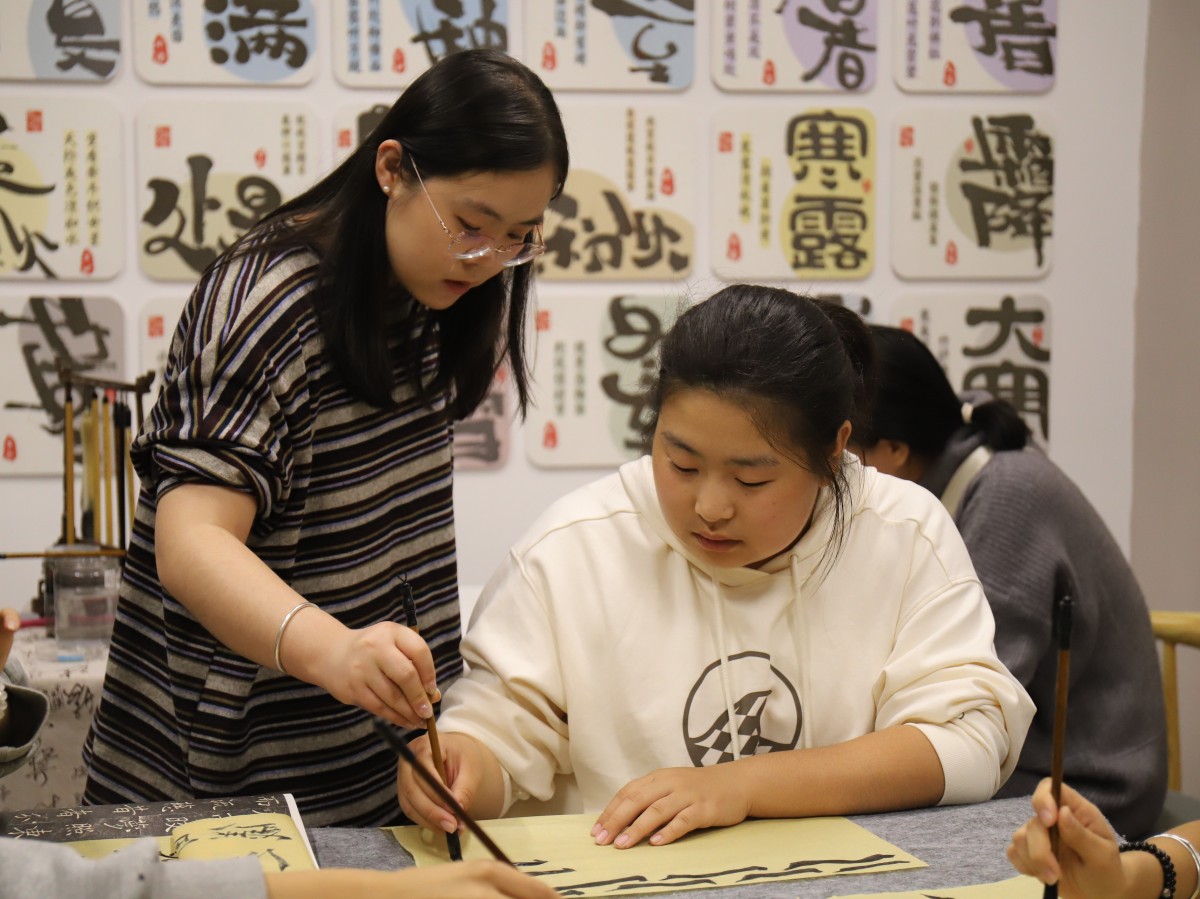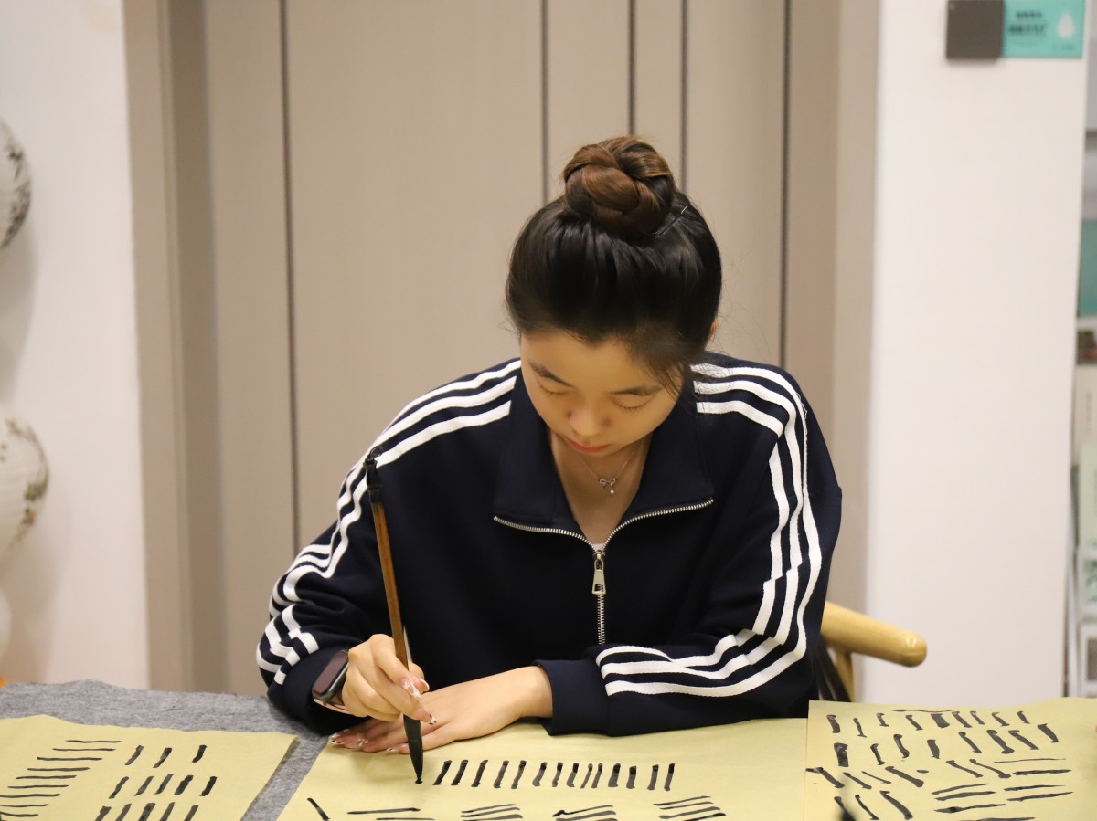 在侯老师的细致指导下,参加者亲身体验了隶书基本笔画的练习,通过毛笔与纸张的书写形态以及运笔的力量感,完整感受隶书的结构与气韵。同学们在笔墨挥洒间掌握了隶书的入门技法,在横竖撇捺中触摸传统文化的温度。本次活动以实践为导向,将书法知识与动手创作相结合,为学生提供了一堂生动的美学修养课,让书法艺术真正成为连接古今、安顿身心的文化载体。